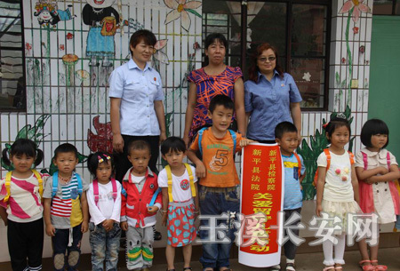 新平法院联系点梭克小学,学生都是4到12岁的住校生,法制宣传对其身心健康发展和自我保护显得尤其重要。新平法院女法官多年来在“六一”儿童节期间,自行筹款购买文体用品和生活用品分发给梭克小学每一位孩子,和孩子们开展文娱活动,耐心倾听孩子的心声,并用通俗易懂的语言从人身安全、法治安全等方面为全校师生送去了生动实用的法制宣传课,受到了全校师生的一致好评。