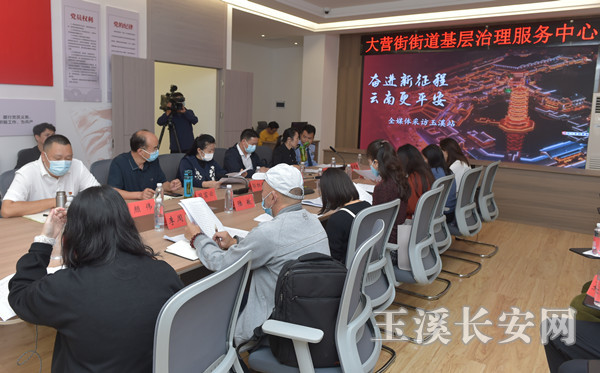 9月13日上午,由省委政法委联合云南日报报业集团组织开展的“奋进新征程 云南更平安”全媒体集中采访玉溪站活动走进大营街基层社会治理中心。此次集中采访活动由省高级人民法院新闻办副主任茶莹带队,法治日报、人民法治杂志社、民主与法制网、人民公安报、云南日报、云南网、云南法制报等多家中央、省、市媒体记者参加,市、区党委政法委分管新闻宣传工作副书记陪同采访。