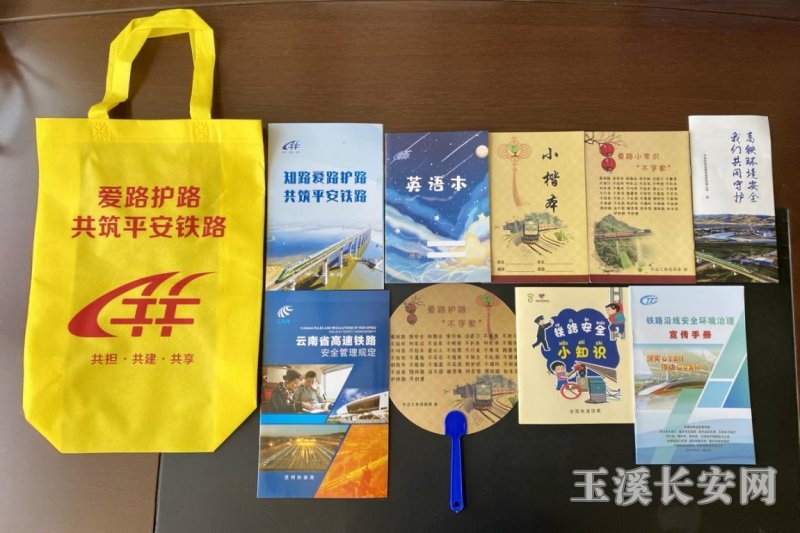此次活动共发放各类宣传品650份,其中:《知路爱路护路,共筑平安铁路》《我们共同守护高铁环境安全》《云南省高速铁路安全管理规定》《铁路沿线安全环境治理宣传手册》《铁路安全小知识》等宣传册150份,发放印有“爱路小常识‘不字歌’”的小楷本和英语本150份、印有“爱路护路‘九不准’”的手摇扇150把,发放手提袋200个。