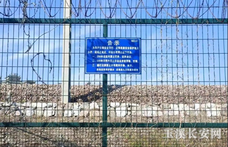 制作并安装一批普法告示牌,不断提升人民群众尊法守法意识。针对我县铁路沿线时有发生的打井、焚烧垃圾秸秆、栽种攀爬类农作物、种植树木等路外安全隐患问题,县委政法委、县护路办制作20块铁路安全告示牌,悬挂于重点路段防护栅栏上,在整治消除存量隐患的基础上严控增量。通过悬挂安全告示牌,有效传递信息、加强警示效果,进一步提升铁路沿线群众对各类危及铁路运输安全行为的认知,倡导人民群众自觉遵守法律法规,争做一名爱路、护路合格公民,努力营造安全稳定的铁路路外环境。
