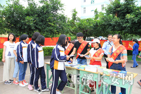 6月22日,玉溪市司法局联合红塔区司法局以及北城街道综治办、派出所、司法所在玉溪二中开展禁毒宣传活动。活动紧紧围绕高中生特殊群体与合成毒品危害为重点,通过展出宣传展板、发放禁毒宣传单的形式向学生宣传普及新修订的《云南省禁毒条例》《“七.五”普法读本》和《法律进校园读本》等内容,营造了师生关注、参与和支持禁毒斗争的浓厚氛围。并组织1100名学生观看以案释法警示教育片《迷失的花季》,该片讲述了青少年李某误入歧途携带毒品最终判刑的真实案例警醒广大青少年要增强识毒能力,远离毒品,塑造美好人生。