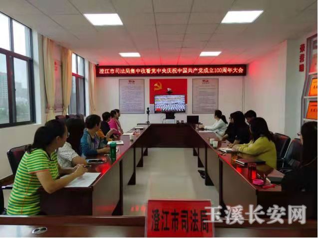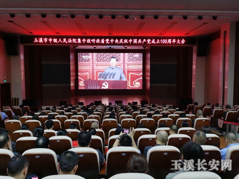 在会议室里、在值班室里、在高速路口执勤卡点、在执勤车里,玉溪市各级政法干警都观看了现场直播,大家纷纷表示,将永远跟党走,坚决贯彻落实习近平法治思想,深入结合党史学习教育,结合政法队伍教育整顿工作,在今后的工作中充分发挥共产党员的先锋模范作用,恪守初心、勇担使命,鼓足干劲、振奋精神,忠于职守,以优异的工作业绩为庆祝中国共产党成立100周年贡献自己的力量!并衷心祝福中国共产党生日快乐!