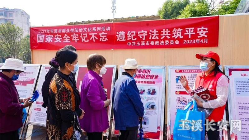 在活动现场,“第八个全民国家安全教育日主题活动”宣传标语格外醒目,主题宣传展板在北苑社区广场一路排开,围绕总体国家安全观,图文并茂地展现国家安全等知识,吸引众多过往市民驻足观看。来自玉溪市委政法委机关的志愿者们“摆摊”向广大市民群众讲解普及国家安全知识,解答群众疑问,增强玉溪市民的国家安全意识,进一步筑牢人民防线。