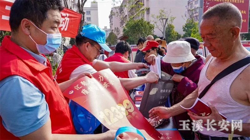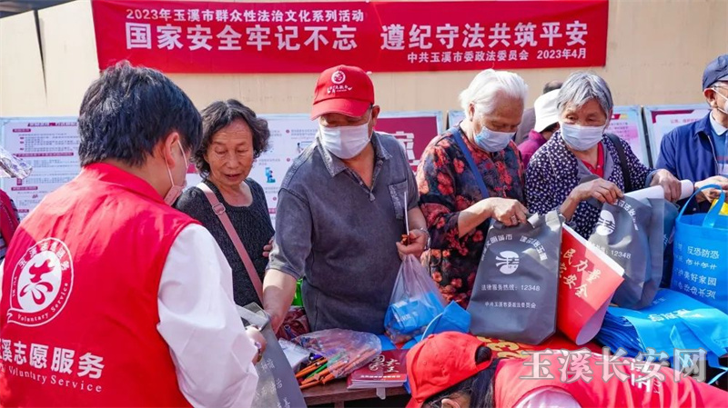 4月14日,玉溪市委政法委机关组织志愿者服务队员走进北苑社区开展“4.15全民国家安全教育日”宣传活动。
