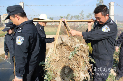 本网讯 为加强对抚仙湖的保护,3月25日,澄江县公安局组织民警到东大河清理垃圾,从源头上堵住污染源,防止对抚仙湖造成污染。( 邹云华 摄)