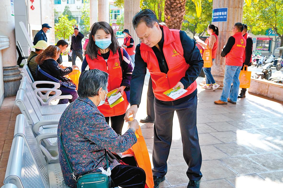 3月1日下午,华宁县宁州街道启动普法强基补短板专项行动。专项行动工作小组和各单位工作人员向沿街商铺、路人开展普法工作,发放普法读本、普法手册等宣传资料2000余份,并对民法典、反有组织犯罪法等法律知识进行讲解,营造了全民尊法、学法、守法、用法的良好氛围。