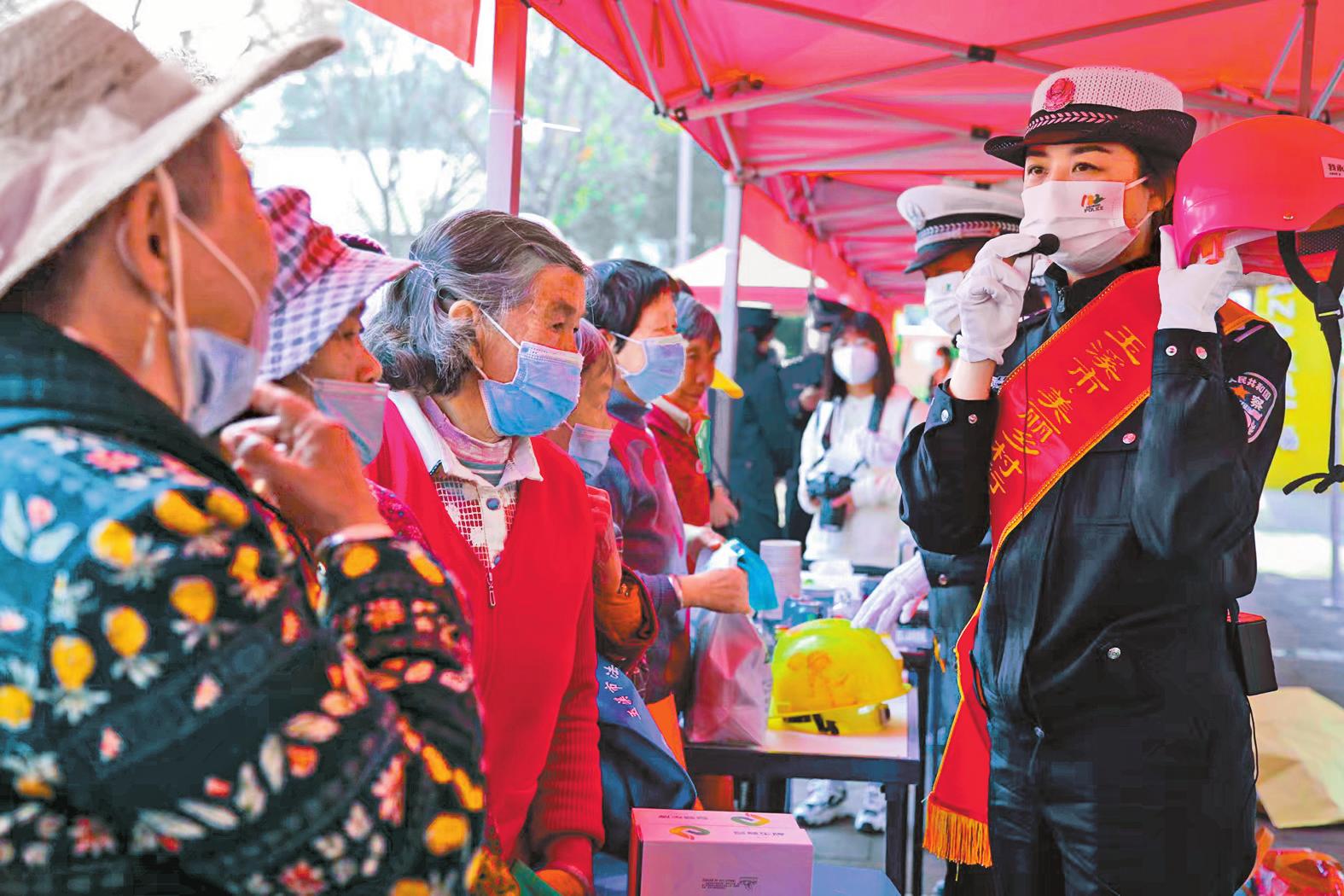 本报讯(通讯员 韩姣 张龙斌 王有才 文/图)今年3月5日是全国第60个学雷锋纪念日。3月3日上午,玉溪市新时代文明实践活动暨2023年“3·5学雷锋”志愿服务活动在红塔区东风文化广场举行,以志愿服务的榜样力量在全市营造学习先进、争做先进、赶超先进的氛围。玉溪市“美丽乡村行”交通安全巡回宣讲队参加了志愿服务和宣誓活动,并举行了2023年“美丽乡村行”交通安全巡回宣传活动启动仪式,开展“守交规送头盔”“一盔一带文明交通伴我行”普法宣传活动,让广大交通参与者牢固树立交通安全和交通法治意识,摒弃交通陋习,养成良好习惯,安全文明出行。 玉溪“美丽乡村行”交通安全巡回宣讲队积极推动普法强基补短板专项行动落实落地,集中开展“一盔一带”系列主题宣讲,普及法律法规、安全常识,强调戴好头盔、系好安全带的重要性。宣讲队员通过发放宣传单、讲解展板、现场解答等方式,掀起宣传高潮,提高市民对驾乘摩托车、电动自行车必须佩戴安全头盔的关注度和知晓率,助力文明城市创建。 “拒绝酒驾 从我做起”。体验挑战展区深受市民喜爱,现场摆放了容易引发争议的“醉驾”食品,如甜白酒、蛋黄派、藿香正气水等食用后会短时间内提高酒精含量的食物,队员们用酒精测试仪器现场测试,让市民直观感受酒驾醉驾的社会危害。 在宣誓环节,队员们举起右手郑重宣誓:“我愿意成为一名光荣的志愿者。我承诺:尽己所能,不计报酬,帮助他人,服务社会,践行志愿精神,传播先进文化,为构建和谐社会奉献力量。” |