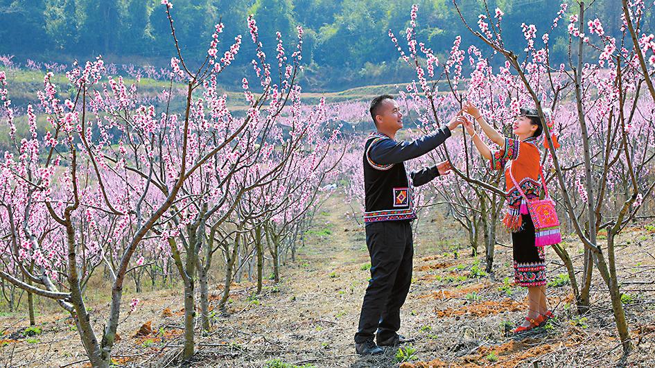 近段时间以来,新平县新化乡新化社区瓦白果小组的2300亩桃花竞相开放,绚烂的桃花孕育着丰收的希望。近年来,新化乡大力发展冬桃种植,并通过引入技术培训,提高农户的栽培管理水平,提升冬桃品质。同时,新化乡还将冬桃产业和农业休闲观光融为一体,在瓦白果小组冬桃种植基地开展了露营、烧烤等一系列活动,吸引游客前来赏花踏青,通过乡村旅游为村民开创增收新路子。 通讯员 雷萍 白健 刘迅洁 摄