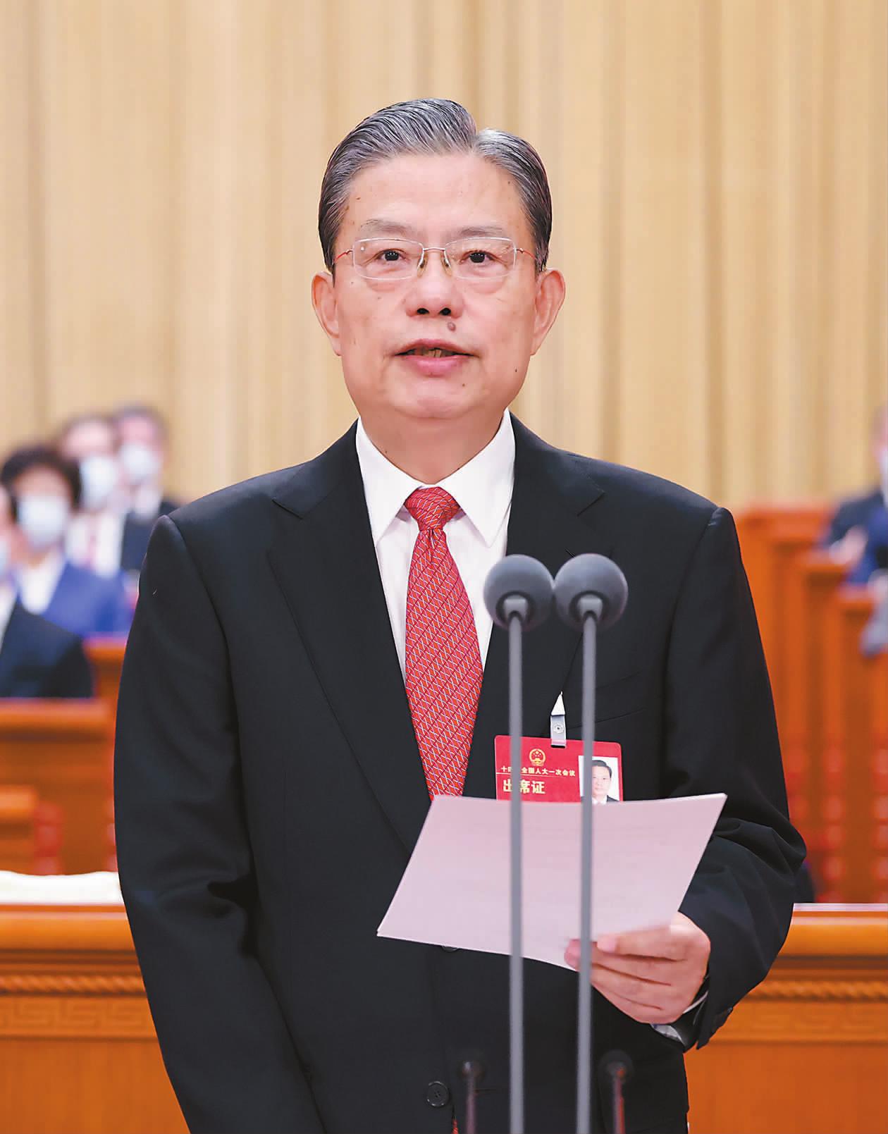 各位代表:     我完全赞成和拥护习近平主席的重要讲话。讲话坚守人民立场、坚定历史自信、彰显使命担当、指引前进方向,必将激励全国各族人民在强国建设、民族复兴新征程踔厉奋发、勇毅前行。我们要认真学习领会、全面贯彻落实。     在这次大会上,习近平同志再次全票当选为中华人民共和国主席、中华人民共和国中央军事委员会主席,反映了全体全国人大代表的共同意志和全国各族人民的共同心愿。党确立习近平同志党中央的核心、全党的核心地位,确立习近平新时代中国特色社会主义思想的指导地位,对新时代党和国家事业发展、对推进中华民族伟大复兴历史进程具有决定性意义。我们要坚决拥护“两个确立”,自觉增强“四个意识”、坚定“四个自信”、做到“两个维护”。     大会全面贯彻党的二十大和二十届一中、二中全会精神,审议通过了各项报告和议案,依法选举和决定任命了新一届国家机构组成人员,圆满完成了各项议程,是一次民主、团结、求实、奋进的大会。会议期间,全体代表忠实代表人民的利益和意志,依法参加行使国家权力,反映民意、共商国是,充分体现了我国全过程人民民主的优势,充分体现了人民代表大会制度的强大生命力和显著优越性。     过去五年,在以习近平同志为核心的党中央坚强领导下,在栗战书同志主持下,十三届全国人大及其常委会坚持以习近平新时代中国特色社会主义思想为指导,全面贯彻中央人大工作会议精神,围绕党和国家工作大局履职尽责、担当作为,各方面工作都取得新的重大进展,为党和国家事业发展作出了重要贡献。在这里,我谨代表十四届全国人大及其常委会,向十三届全国人大代表,向十三届全国人大常委会组成人员,向栗战书同志,致以崇高的敬意!     大会选举产生了十四届全国人大常委会,并选举我担任委员长。我们衷心感谢各位代表的信任,深感使命崇高、责任重大。我们将始终坚持党的全面领导,紧紧依靠人大代表和人民群众,尊崇宪法,恪尽职守,廉洁奉公,接受人民监督,为党和国家事业竭诚奉献,绝不辜负各位代表和全国各族人民的重托。     各位代表!     党的二十大擘画了全面建成社会主义现代化强国、以中国式现代化全面推进中华民族伟大复兴的宏伟蓝图。十四届全国人大及其常委会要全面贯彻党的二十大精神,认真履行宪法法律赋予的职责,坚持党的领导、人民当家作主、依法治国有机统一,把人民代表大会制度坚持好、完善好、运行好,推动党的二十大确定的目标任务落实见效,为全面建设社会主义现代化国家贡献力量。     我们要发展全过程人民民主,保证人民通过人民代表大会行使国家权力,保证人民依法实行民主选举、民主协商、民主决策、民主管理、民主监督。要健全保证宪法全面实施的制度体系,不断提高宪法实施和监督水平,谱写新时代中国宪法实践新篇章。要深入推进科学立法、民主立法、依法立法,使中国特色社会主义法律体系更加科学完备、统一权威,以良法促进发展、保障善治。要实行正确监督、有效监督、依法监督,保证宪法法律全面有效实施,保证国家机关及其工作人员的权力受到监督和制约。要支持和保障代表依法履职,充分发挥代表来自人民、扎根人民的特点优势,当好党和国家联系人民群众的桥梁。要全面加强人大及其常委会自身建设,努力打造政治坚定、服务人民、尊崇法治、发扬民主、勤勉尽责的人大工作队伍,切实担当起新时代新征程赋予的使命责任。     各位代表!     团结就是力量,奋斗创造伟业。让我们更加紧密地团结在以习近平同志为核心的党中央周围,高举中国特色社会主义伟大旗帜,坚持以习近平新时代中国特色社会主义思想为指导,全面贯彻党的二十大精神,自信自强、守正创新,凝心聚力、埋头苦干,为全面建设社会主义现代化国家、全面推进中华民族伟大复兴而团结奋斗!         (新华社北京3月13日电)  |