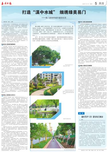 □ 本报记者 施宇 文/图 草长莺飞四月天,芳菲悠然满人间。从易门县城中心干道步入龙泉河公园廊道,碧绿的水连着霭青的山、映着静垂的柳、引向远方的景,两岸水色犹如百里画廊,更似一件墨绿的绣品,吸引不少游客和市民驻足观赏,细品“城在林中、水在城中、城林水交相辉映”的绿美景观。 “县城像花园一样越来越美了。”“‘口袋’公园更加方便我们休憩纳凉。”“目光所及之处皆有绿意。”从打造园、林、城、廊融为一体的“公园城市”,到应用乡土适生植物平衡城市生态,再到建设绿美街区和绿美街道……一系列绿美措施在加强城市绿地普惠性和均好性的同时,促进了社区人居环境改善,让易门市民真切感受到城市绿化美化带来的变化。 近年来,易门县大力践行“绿水青山就是金山银山”理念,实施绿美城市建设三年行动,构建和优化城市绿地系统和山水空间格局,不断提升城市内涵品质和区域影响力,着力打造“特色鲜明、景观优美、类型丰富、幸福宜居”的绿美易门,为“最美云南”、绿美玉溪建设注入绿美力量。 规划引领 抓实城市绿美建设 晨光熹微,天蓝水碧,晴日的易门被浓淡相宜的山峦围绕,显得优雅而沉静。眺望远方,青山上绿意盎然,俯视大地,城市中绿道如网,这座被绿色铺满的城市吸引了越来越多的游人。 城市要绿美,规划须先行。2022年11月21日,易门县住房和城乡建设局、易门县民政局、易门县自然资源局、玉溪市生态环境局易门分局、易门县交通运输局、易门县水利局、易门县林业和草原局联合印发《易门县绿美城市建设三年行动实施方案(2022―2024年)》,明确了易门县绿美城市建设三年行动的总体要求、重点工作、目标任务、实施步骤和保障措施。 “我们坚持规划引领、生态优先、绿色惠民的理念,成立了易门县绿美城市建设三年行动领导小组,通过认真践行‘三法三化’,高规格、高质量推进绿美城市建设。”易门县住房和城乡建设局副局长杨程伟介绍,围绕绿美易门建设,需要着力构建“山、水、景”和“产、城、人”有机融合的城市公园体系,打造“山水+公园”“水系+绿带”“绿道+景观”的模式,依山顺水连通易门内部生态游憩空间和外围自然山水脉络,示范带动全域绿化美化。 按照《城市绿线管理办法》和《城市绿线划定技术规范》的要求,易门县制定了《易门县城绿线管理办法(试行)》,用于县城建成绿地的保护控制和规划预留绿地的建设控制,规定了绿线的内容、各类型绿地(公园绿地、防护绿地、道路附属绿地、河流沟渠)的绿线控制范围,设立绿线公示牌或绿线界碑,向社会公布四至边界,并且有明确的城市绿化管理制度。 目前,易门县实施的绿地系统规划为《易门县城绿地系统规划(2008―2025年)》,该专项规划中包含生物(重点是植物)多样性保护与建设规划、树种规划、古树名木保护规划等专章,而新的国土空间规划和新版《易门县城市绿地系统规划(2022―2030年)》正在同步修编中,各项规划将与国土空间规划相衔接,实现多规合一。 杨程伟介绍,通过历年绿地规划和建设,易门县形成了“点、线、面”结合、连网成片、特征鲜明、结构完整的绿地空间格局,各项绿地指标也显著提升。截至2022年底,易门县绿化覆盖面积213万平方米,绿地率达40.08%,人均公园绿地面积14.01平方米,公园绿化活动场地服务半径覆盖率95.6%,城区绿道长度15.184公里,万人拥有绿道长度3.61公里;新建“口袋”公园5个,创建绿美社区6个,2个街区被命名为绿美街区、4条街道被命名为绿美街道……绿色成了易门最具魅力的标志之一。 特色突出 城市绿化立足本土 走进享有“滇西第一名胜”美誉的龙泉国家森林公园,郁郁葱葱的古树名木与“大龙泉水”相映成趣,鸟啼声和虫鸣声清脆悦耳,不少市民前来踏青赏春,在林荫下放松心情。“我每隔两三天就要带孙子来公园散步,每次走到这棵有着450年树龄的榉树下,都会感叹自然生命的顽强。”龙泉街道中心街社区居民王红英说。 编号53042510301、保护等级二级、树龄450年、管护责任单位龙泉国家森林公园……扫了下王红英口中这棵榉树标牌上的二维码,这棵树的“身份信息”就清楚地亮了出来。古树名木作为城市历史的见证,是名胜古迹的重要佳景,是研究自然史的重要资料,也是社会文明程度的标志。自去年起,易门县对已录入《全国古树名木信息管理系统》的1721株古树分步实施挂牌保护,现已完成建档上报和挂牌工作,每一株古树均获得一个唯一的、不变的法定号码,市民通过扫码的方式即可了解古树的基本情况和管护信息。 “随着树龄的增加,水分与养分的疏导距离逐渐变长,生长也变得缓慢,所以我们一般情况下不对其进行修剪。”易门龙泉自然保护区管护局工作人员王发坤介绍,现在园内最年长的古松已生长了200多年,为全省所罕见,而片状分布的榉树则更为古老,最大者主干直径1.3米,高40多米,树龄达400多年。通过派专人对保护区内的13片包保责任区进行值守巡逻,严厉打击偷砍盗伐、毁林开垦、乱占林地等破坏森林资源的行为,不断做好野生动植物保护、森林防火、林业有害生物防治等方面工作,如今易门县城古树名木及后备资源保护率达到100%。 除保护好古树名木外,易门坚持把乡土适生植物作为城市生态平衡、城市景观打造的重要内容,规范好林木种苗行业管理和执法工作,