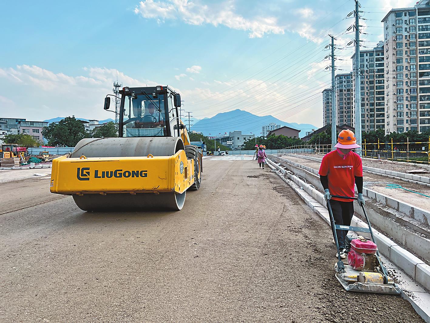 4月6日,在元江县城平安路北延长线项目施工现场,压路机、推土机等机械来回穿梭,现场机声隆隆,一派热火朝天的景象。据悉,平安路北延长线起于向阳路东延线,止于滨江路,道路全长372.9米,双向4车道,预计今年5月通车。“十四五”期间,元江县共规划建设市政道路19条,预计总投资11.4亿元,其中新建7条,打通“断头路”12条。项目建成后,将实现县城路网基本贯通,道路通行能力将大幅提升。