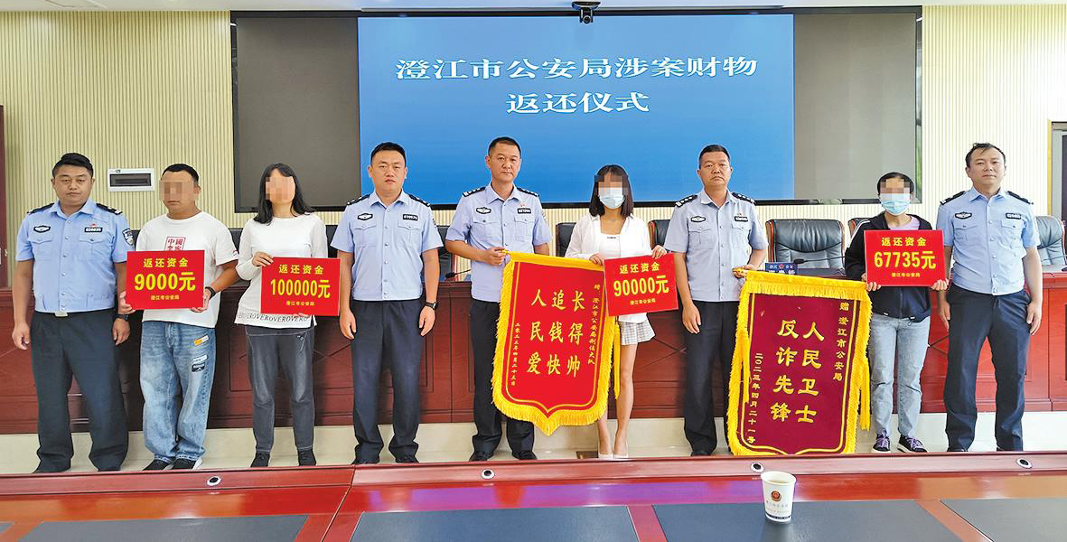 本报讯(通讯员 钱星宇 文/图)一声声感谢、一面面锦旗,表达了群众对澄江市公安局高效破案、全力追赃的感谢和赞誉。4月23日,澄江市公安局举行涉案财物返还仪式,向部分群众返还被骗资金26万余元。 返还仪式上,澄江市公安局有关领导介绍了2023年以来打击侵财犯罪的成效和战果,指出了公安机关打击电信网络诈骗犯罪面临的困难和挑战,提醒广大市民时刻保持警惕,增强防范意识,避免经济损失。 据了解,本次返还的资金均为澄江警方近期破获的电信网络诈骗案件涉案资金。犯罪分子以网络刷单、网络贷款、退费理赔、投资、网恋等为由,对被害人实施诈骗。 自接到群众被骗警情以来,澄江市公安局抽调精干警力深入研究发案特点,围绕资金流、信息流、人员流,精准研判、循线追踪,从捣窝点、打平台、抓金主、断资金、控人员五个方面全方位开展侦查。截至目前,民警已奔赴全国各地,行程万余公里,抓获犯罪嫌疑人25名,破获诈骗案件13起,挽回经济损失26万余元。 |