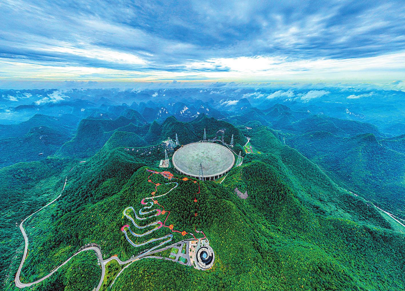 6月23日拍摄的“中国天眼”全景。记者7月25日从FAST运行和发展中心获悉,截至目前,被誉为“中国天眼”的500米口径球面射电望远镜(FAST)已发现800余颗新脉冲星。“中国天眼”于2016年9月25日落成启用,2020年1月11日通过国家验收并正式开放运行,是全球最大且最灵敏的单口径射电望远镜。目前,“中国天眼”已进入成果爆发期,今年以来发布多个重要成果,包括发现轨道周期仅为53分钟的脉冲星双星系统、探测到纳赫兹引力波存在的关键性证据等,继续保持了我国在低频射电天文学方面的国际领先地位。 新华社记者 欧东衢 摄 (新华社7月25日发) |