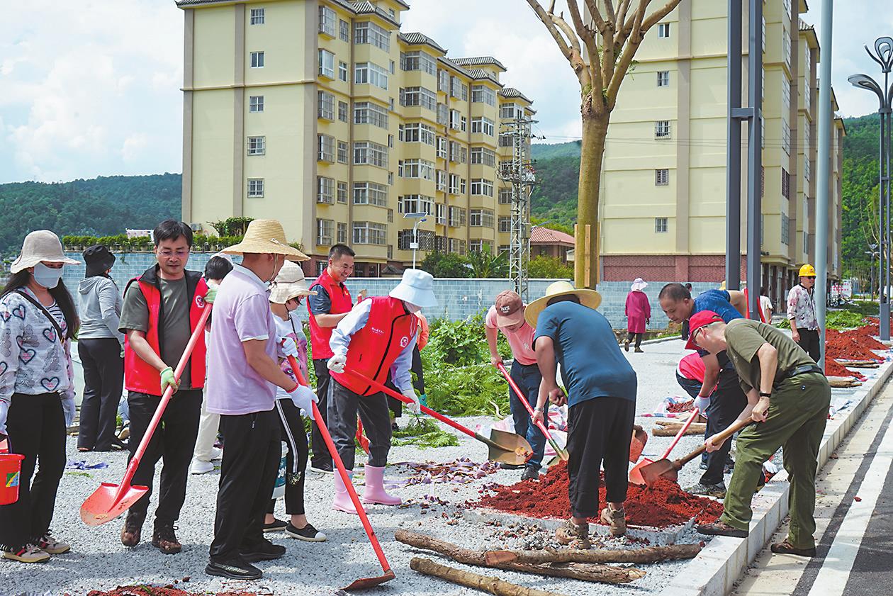 8月4日,峨山县住房和城乡建设局联合县委县直机关工委组织党员开展“绿美峨山党旗红”义务植树活动。活动在县城猊江滨河南路开展,现场一派热火朝天的忙碌景象。经过一个下午的努力,共栽下蓝花楹树苗72棵。