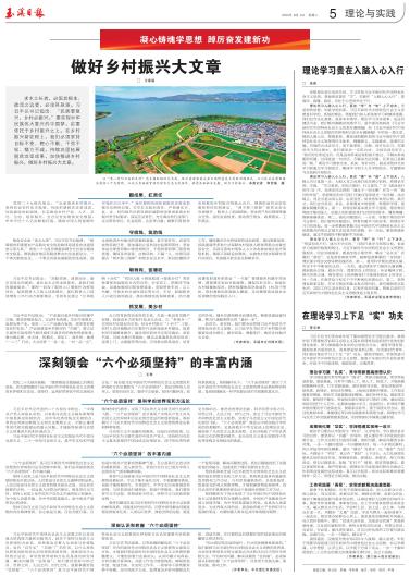 思想理论是行动的先导。学习贯彻习近平新时代中国特色社会主义思想,基础和前提在“学”,关键在“入脑入心入行”,要真学、真懂、真用,内化于心进而外化于行。 理论学习入脑入心入行,要在“学”与“知”上下功夫。学是知的前提,知是学的结果。习近平新时代中国特色社会主义思想是科学的、系统的理论,需要我们深入系统地学习和整体把握。我们应当认认真真、原原本本地学。理论学习并非易事,也没有捷径可走,我们唯有脚踏实地地学习,逐字逐句地研读《习近平新时代中国特色社会主义思想专题摘编》和《习近平新时代中国特色社会主义思想的世界观和方法论专题摘编》中的每一篇文章,做到入眼入耳。要想系统、整体地把握和领悟习近平新时代中国特色社会主义思想的科学体系、精髓要义、实践要求,就要用正确、有效的方式去学习,而不是零碎、分散、碎片化学习。在理论学习的过程中,我们要讲求一定的方法,正如毛泽东所言:“我们的任务是过河,但是没有桥或没有船就不能过。不解决桥或船的问题,过河就是一句空话。不解决方法问题,任务也只是瞎说一顿。”理论学习要想全面、系统、有针对性,就必须坚持全面学习和重点学习相结合、集体学习和个人自学相结合、专题辅导与交流研讨相结合。 理论学习入脑入心入行,要在“懂”和“通”上下功夫。入眼入耳只是第一步。入眼入耳之后我们还应潜心钻研,将理论学深、学透。“学之愈深,则知之愈明、行之愈笃。”在《改造我们的学习》中,毛泽东同志曾把“满足于一知半解”作为一种“极坏的作风”。思想理论的学习我们不能仅仅停留在一知半解、浅尝辄止,而应当是由浅入深、由表及里,知其然知其所以然。换言之,我们应当多思、多品、多琢磨其中的道理、哲理和学理,把握其精髓和要义。第一,将理论和基本观点学习透彻。理论唯有彻底才能说服人,说服人的前提是我们已经明其根本、懂其精髓,能够准确表述。第二,强化问题意识。一方面,在整个理论的学习过程中,我们要有问题意识,带着问题学习和思考,将理论学习引向深处,进一步明确和掌握习近平新时代中国特色社会主义思想蕴含的观点立场方法及其内在逻辑。另一方面,聚焦困惑和疑虑,通过学思践悟不断破解学习困惑。 理论学习入脑入心入行,要在“用”和“行”上下功夫。“苟徒知而不行,诚与不学无异。”用和行是学与知的目标,也是学习成果的检验和转化。习近平新时代中国特色社会主义思想扎根现实、回应实践需求,既是改造主观世界、解决“总开关”问题的“真经”,又是改造客观世界、破解发展难题的“金钥匙”。理论源于现实又指导着实践活动。第一,要用科学理论武装头脑,在实干中不断深化认识。一方面,通过理论学习保持头脑清醒,做到政治立场、政治方向、理想信念上的坚定,补足精神之钙,铸牢思想之魂。唯有理论上的清醒我们才能做到政治上的坚定。另一方面,在艰苦奋斗和实干中不断强化思想认识。第二,坚持理论联系实际。在学习理论和基本观点的同时,我们要联系实际生活、实际工作以及对照自身,正视并直面问题,积极自觉用习近平新时代中国特色社会主义思想改造主观世界。 (作者单位:玉溪农业职业技术学院) |