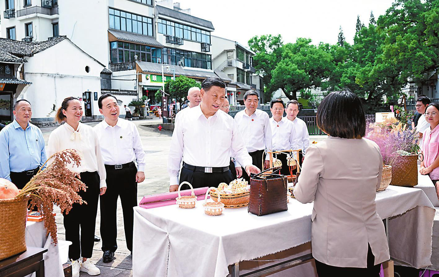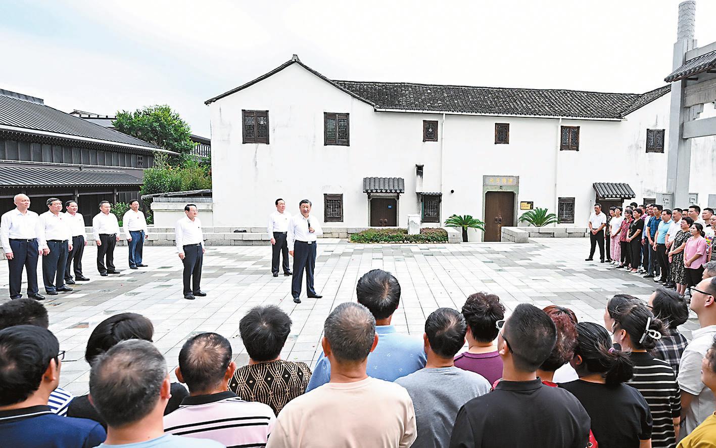 新华社浙江杭州/山东枣庄9月25日电 中共中央总书记、国家主席、中央军委主席习近平近日在浙江考察时强调,要完整准确全面贯彻新发展理念,围绕构建新发展格局、推动高质量发展,聚焦建设共同富裕示范区、打造新时代全面展示中国特色社会主义制度优越性的重要窗口,坚持一张蓝图绘到底,持续推动“八八战略”走深走实,始终干在实处、走在前列、勇立潮头,奋力谱写中国式现代化浙江新篇章。 9月20日至21日,习近平在浙江省委书记易炼红和省长王浩陪同下,先后来到金华、绍兴等地,深入农村、商贸市场、陈列馆、文化园区等进行调研。 20日上午,习近平来到金华市义乌市后宅街道李祖村考察调研。近年来,李祖村人居环境大为改善,各类创业主体纷纷进驻,乡村旅游十分红火,被评为全国文明村。习近平先后在村党群服务中心、“共富市集”、扎染商铺等场所了解李祖村发展变化情况。得知李祖村年人均收入达到5.2万元,习近平十分高兴。他说,李祖村扎实推进共同富裕,是浙江“千万工程”显著成效的一个缩影,要再接再厉,在推动乡村振兴上取得更大成绩。乡村振兴为年轻人提供了展现才华的用武之地,希望更多的年轻人为乡村振兴发挥积极作用。离开村子时,当地群众簇拥到总书记身旁,热情欢送总书记。习近平对大家说,乡村振兴潜力无限、大有可为,乡亲们要努力奋斗,一起奔向共同富裕的美好明天。 随后,习近平来到义乌国际商贸城考察。他通过电子屏幕实时了解商贸城运营及“义新欧”班列运行情况,并走进市场同商户、小企业主代表亲切交流,详细询问市场行情。他强调,义乌小商品闯出了大市场、做成了大产业,走到这一步很了不起,每个人都是参与者、建设者、贡献者。商贸城要再创新辉煌,为拓展国内国际市场、畅通国内国际双循环作出更大贡献。 今年是毛泽东同志批示学习推广“枫桥经验”60周年。20日下午,习近平来到“枫桥经验”发源地诸暨市枫桥镇,参观枫桥经验陈列馆,了解新时代“枫桥经验”的生动实践。习近平指出,要坚持好、发展好新时代“枫桥经验”,坚持党的群众路线,正确处理人民内部矛盾,紧紧依靠人民群众,把问题解决在基层、化解在萌芽状态。 随后,习近平乘车来到位于绍兴的浙东运河文化园考察。他步行察看古运河河道和周边历史文化遗存,详细了解浙东运河发展演变史和当地合理利用水资源、推进大运河保护等情况。习近平强调,大运河是世界上最长的人工运河,是十分宝贵的文化遗产。大运河文化是中国优秀传统文化的重要组成部分,要在保护、传承、利用上下功夫,让古老大运河焕发时代新风貌。 21日下午,习近平听取了浙江省委和省政府工作汇报,对浙江各项工作取得的成绩给予肯定,对浙江提出了新要求。 习近平指出,浙江要在以科技创新塑造发展新优势上走在前列。要把增强科技创新能力摆到更加突出的位置,整合科技创新力量和优势资源,在科技前沿领域加快突破。强化企业科技创新主体地位,推动创新链产业链资金链人才链深度融合,加快科技成果落地转化。把实体经济作为构建现代化产业体系的根基,引导和支持传统产业加快应用先进适用技术,推动制造业高端化、智能化、绿色化发展。深化国家数字经济创新发展试验区建设,打造一批具有国际竞争力的战略性新兴产业集群和数字产业集群。加强科技基础能力建设,深化科技体制改革,打造科创高地。从全球视野布局产业链供应链建设,不断提升产业链供应链韧性和安全水平。坚定不移推动发展方式绿色转型,建立完善绿色低碳循环发展的经济体系。 习近平强调,浙江要在推进共同富裕中先行示范。要把缩小城乡差距、地区差距、收入差距作为主攻方向,进一步健全城乡融合发展体制机制。坚持就业优先政策,在推动传统产业转型升级和发展新兴产业中注重扩大就业容量,解决好重点群体就业问题。深化收入分配制度改革,健全多层次社会保障体系。全面推进乡村振兴,积极发展乡村特色产业,深化“千村示范、万村整治”工程。加强平安浙江、法治浙江建设,在推进基层治理体系和治理能力现代化上创造更多经验。 习近平指出,浙江要在深化改革、扩大开放上续写新篇。要以重点领域改革为牵引,全面推进各领域体制机制创新。以服务全国、放眼全球的视野来谋划改革,稳步扩大规则、规制、管理、标准等制度型开放。发挥各种开放平台的功能作用,创新利用外资、做大外贸的方法和渠道。主动适应国际经贸规则重构走向,在服务业开放、数字化发展、环境保护等方面先行先试。坚持“两个毫不动摇”“三个没有变”,鼓励和支持民营企业积极参与全球范围产业分工和资源配置,提升核心竞争力。 习近平强调,浙江要在建设中华民族现代文明上积极探索。要更好担负起新时代新的文化使命,赓续历史文脉,加强文化遗产保护,推动优秀传统文化创造性转化、创新性发展。坚守中华文化立场,积极发展反映时代要求、具有时代特色的新文化,发展中华文明的现代形态。弘扬伟大建党精神,广泛培育和践行社会主义核心价值观,发展社会主义先进文化。繁荣发展文化事业和文化产业,持续推进城乡公共文化服务标准化、均等化,加强公民道德建设,推进书香社会建设。运用杭州亚运会亚残运会、世界互联网大会等窗口加强文化交流传播,