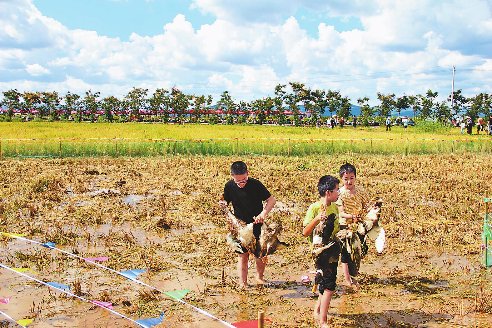 摸鱼捉鸭庆丰收