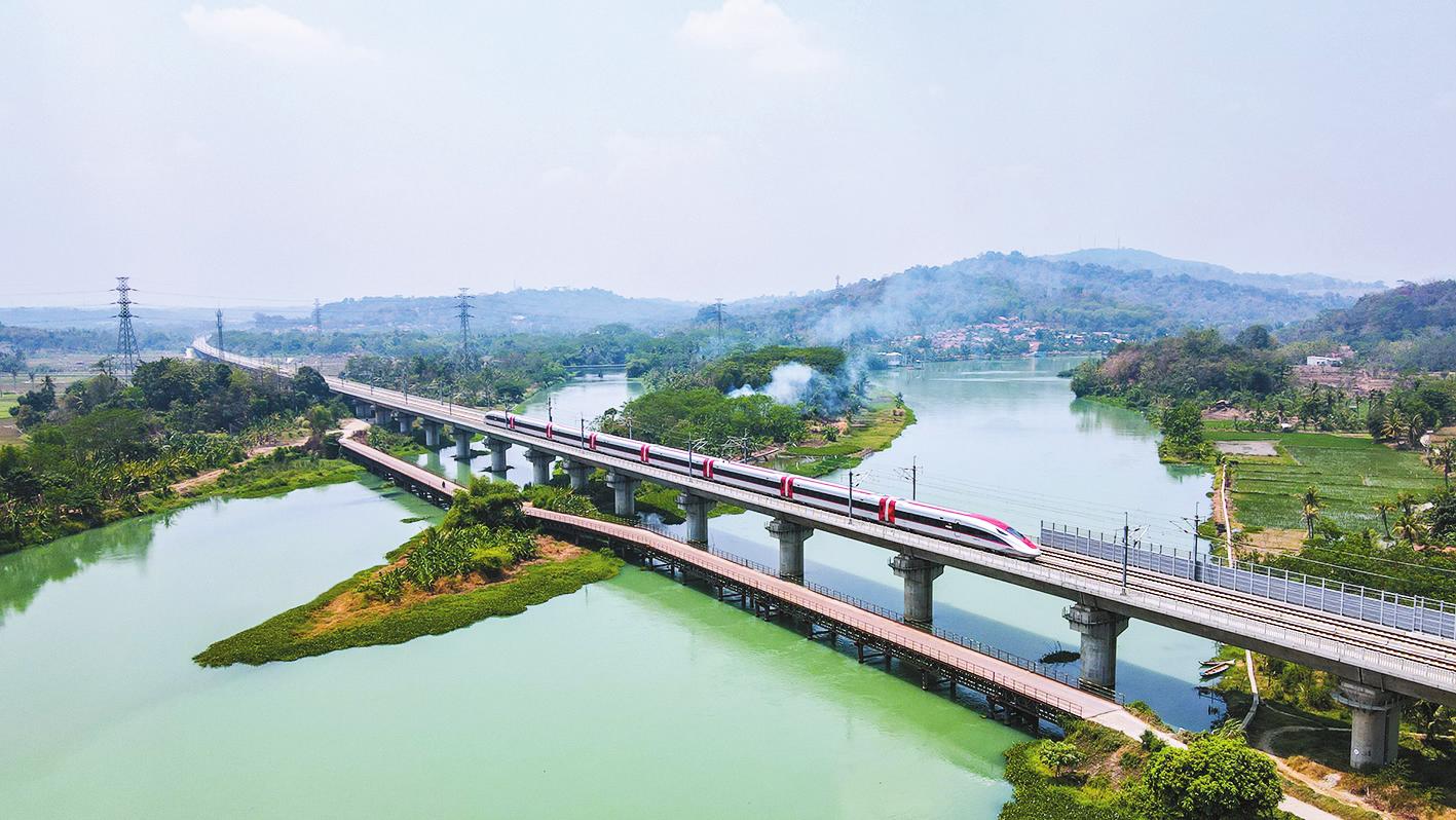 今年恰逢共建“一带一路”倡议提出十周年。十年来,“一带一路”倡议合作硕果累累,陆续建成的一系列标志性项目助力各国发展,为各国人民带来实实在在的好处。从空中俯瞰,这些“国家地标”尽显恢弘大气,成为“中国建造”的闪亮名片。 这是2023年9月30日在印度尼西亚普哇加达拍摄的一列行驶中的雅万高铁高速动车组(无人机照片)。雅万高铁是印尼和东南亚第一条高速铁路,是中印尼两国高度关注的共建“一带一路”旗舰项目,是国际上首个由政府主导搭台、两国企业合作建设和管理的高铁项目。 新华社记者 徐钦 摄 (新华社10月10日发) |