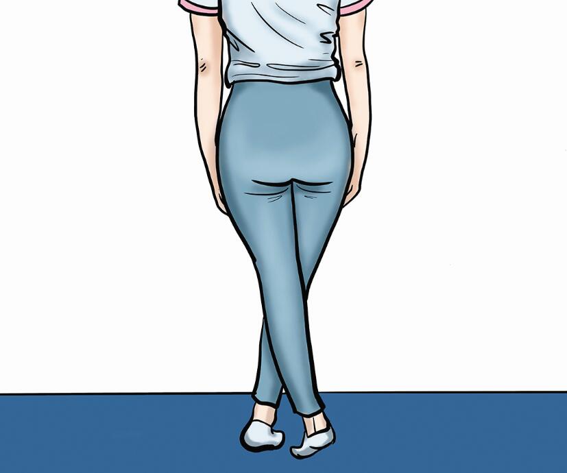 垫脚提肛运动:放松身体,双脚交叉,踮起脚尖,收缩肛门后放松,反复进行20次。