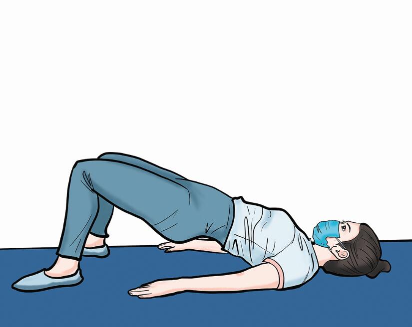 平卧提肛运动:平卧屈膝,抬高臀部,收紧肛门后放松,反复进行10到20次。