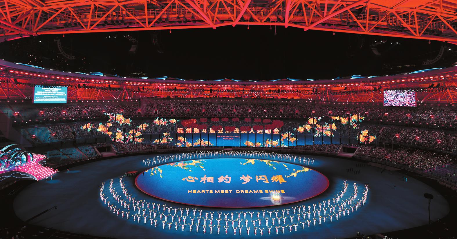 10月22日拍摄的亚残运会开幕式现场。当日,杭州第4届亚洲残疾人运动会开幕式在杭州奥体中心体育场举行。