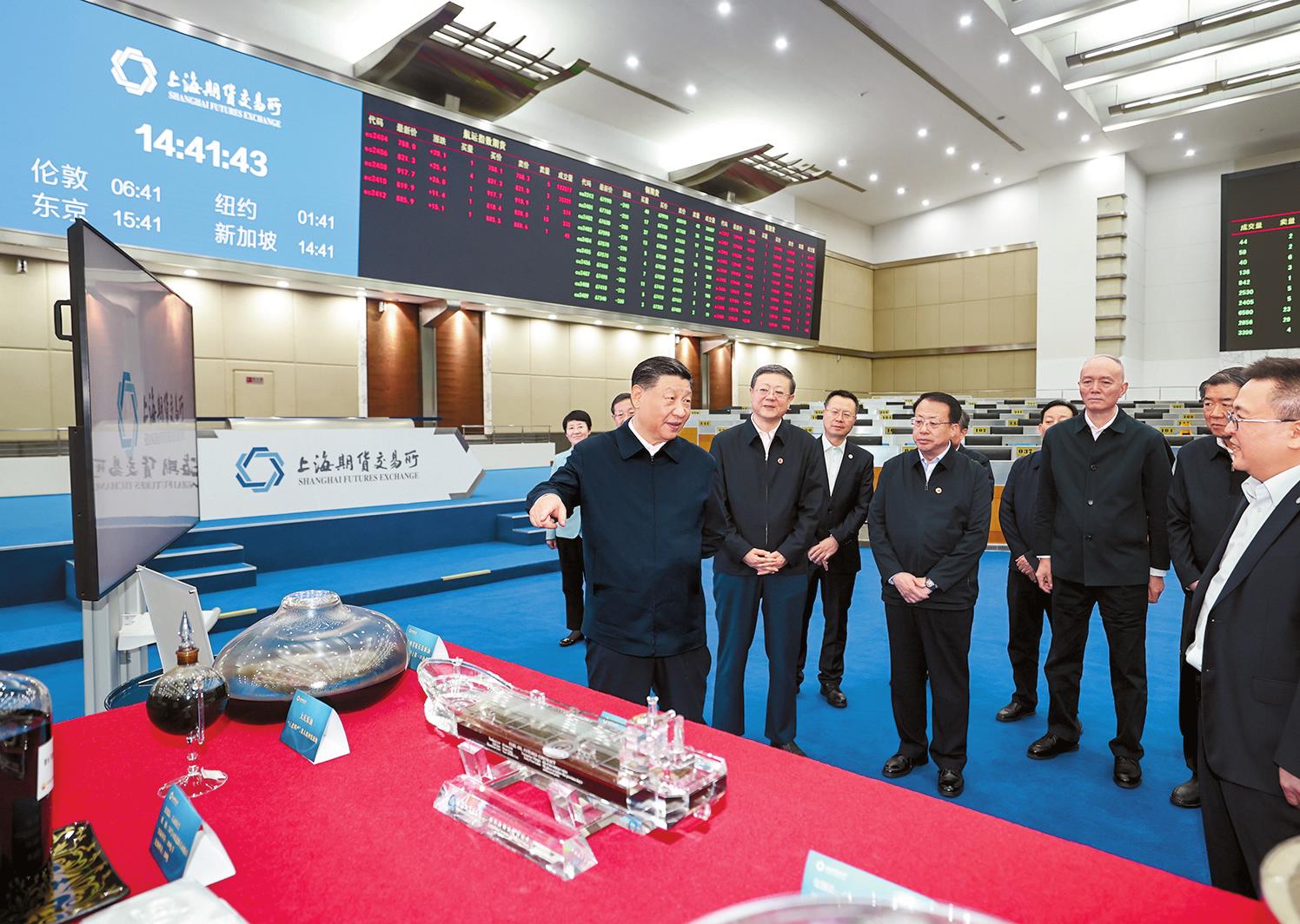 11月28日至12月2日,中共中央总书记、国家主席、中央军委主席习近平在上海考察。这是11月28日下午,习近平在上海期货交易所考察。 新华社记者 王晔 摄