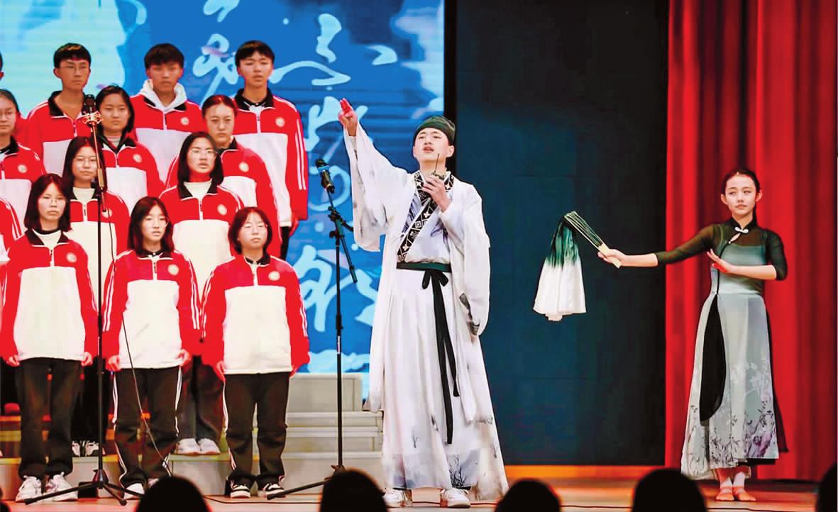 近日,玉溪师院附中团委携手高一年级语文备课组举行“云光之声”系列活动——校园诗歌朗诵会,12个班级学生依次上台,或扮演古人吟诵名篇,或演绎故事、传唱经典,进一步弘扬中华优秀传统文化,营造书香校园氛围。