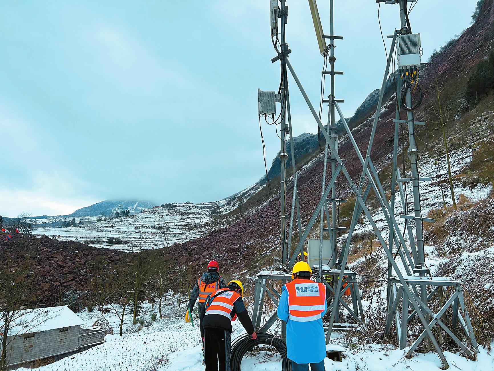 1月22日,工作人员在镇雄县山体滑坡灾害现场附近开展工作,保障救援现场通信畅通。 (新华社1月22日发)