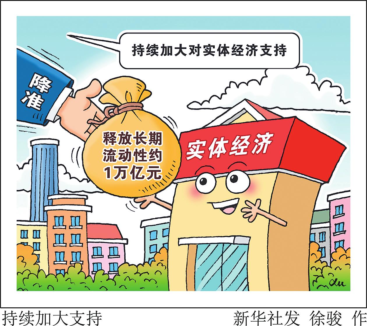 2月5日,今年首次降准落地,由此释放长期流动性约1万亿元。专家表示,此次降准释放稳经济、稳市场的积极信号,有助于增加金融机构长期稳定资金来源,进一步加大对实体经济的资金投入。 徐骏/作(新华社2月5日发)