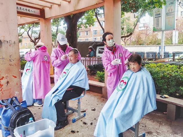 2月3日,志愿者在红塔区研和街道研和社区为老人提供义剪服务。当天,玉溪市民政局联合玉溪市暖暖公益协会和爱心企业,到研和社区开展“寒冬送暖 春节慰问”关爱老人志愿服务活动。活动中,志愿者走访慰问了社区困难老人,为他们送上了大米、食用油、面条、春联等慰问物资。此外,志愿者还为老人们提供了义剪、义演、义诊、法律咨询等服务。 本报记者 史桦 通讯员 谢莲仙 摄