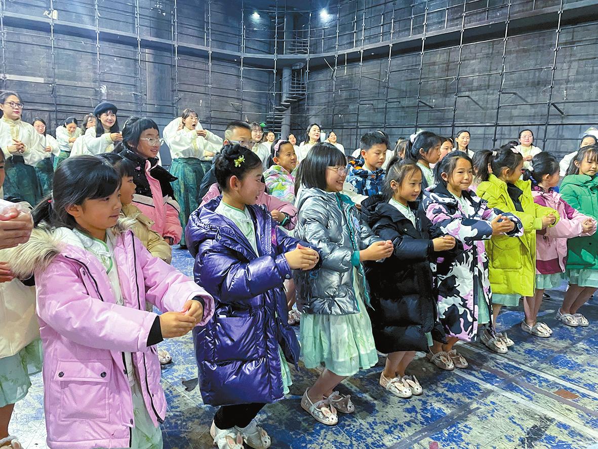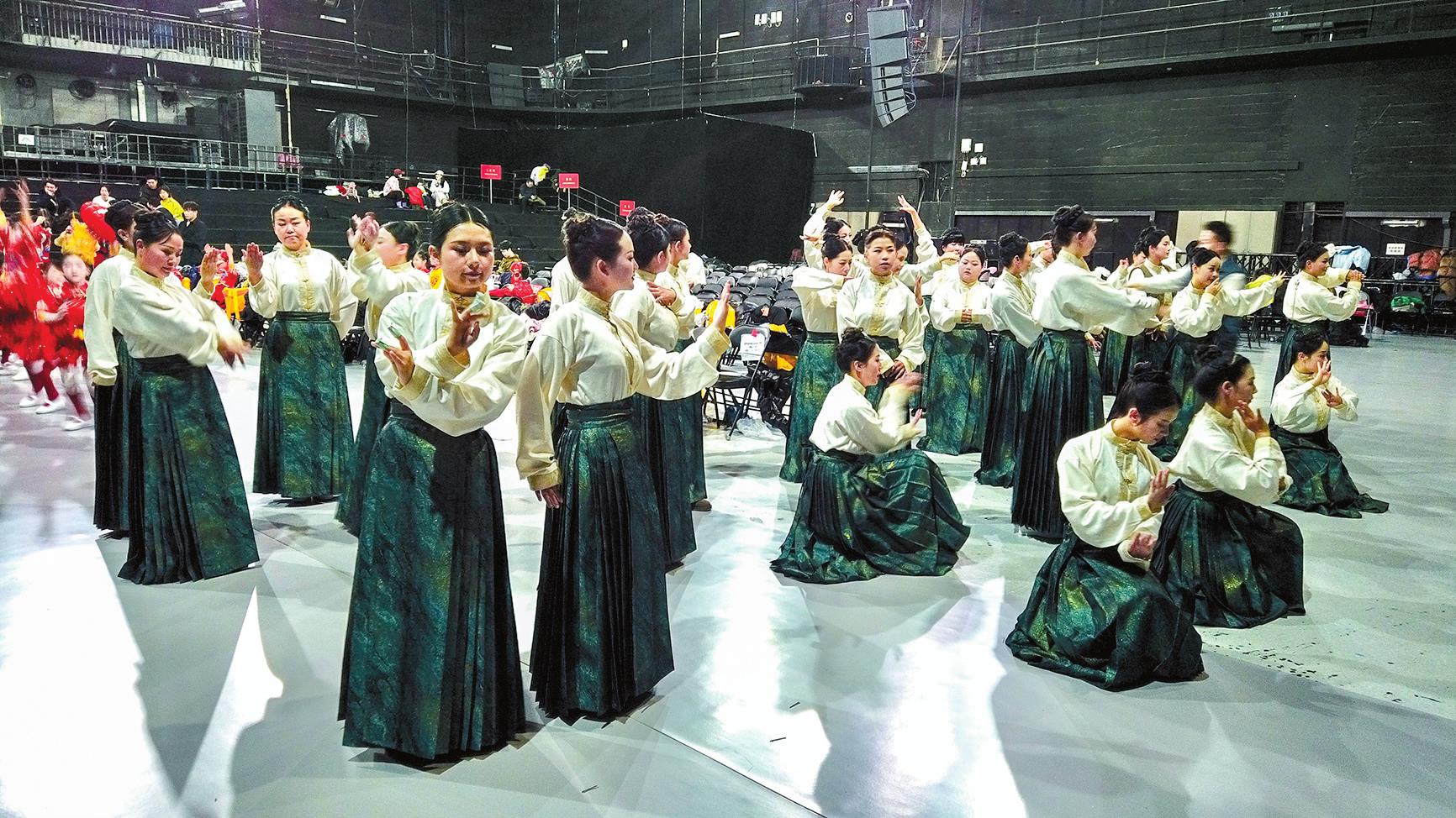 时间紧、任务重,2月19日晚上,参演的师生们到达北京后便马不停蹄地前往中央广播电视总台。 “别人来央视都是表演节目,展示排练成果的,我们来央视相当于是新编排一个节目。”这是合唱团刚到北京,团员们互相调侃的一句话。玉溪聂耳教师合唱团、玉溪师范学院附属小学童声合唱团的指挥普海玲表示,歌曲进行了新的改编,又加上舞蹈动作,再加上需要争分夺秒适应舞台,一系列临时创编让教师合唱团团员们很忐忑。普海玲说:“大家怕表现不好。我就不停鼓励大家,让大家更有信心完成这场演出。”在排练现场,普海玲总说,《小雅·鹿鸣》完美呈现要每个人共同努力。“编导老师精益求精的精神和陪着我们一起加班加点排练,我们看在眼里也深受鼓舞。”普海玲补充道。 央视编导老师用最短的时间,把一个合唱节目加入了传统文化元素的舞蹈动作,节目的表现形式、舞蹈的设计和舞美都与《小雅·鹿鸣》整首诗相得益彰。杨进宏介绍,老师带着孩子们一唱一和,脚步一前一后,形象展示了“什么是传承”。另外,舞蹈设计也很巧妙,一开始孩子们在边上,老师在中心,老师在前面引领,孩子们在后面跟随,到最后孩子们走到了老师前面,整个过程表现了教育从传承到超越的过渡,正好诠释了中华优秀传统文化中“守正创新”的传承路径。 早上踏着晨光走进央视演播厅,晚上跟着月光回到酒店,这就是合唱团在北京的日常。普海玲说:“排练的强度很大,大家每天的睡眠时间平均不超过4个小时,但是老师和孩子们都在坚持,大家都在不断挑战着自己。” 当记者问到孩子们:“累不累?困不困?”大家都一致回答:“累!超级累!”但是当老师集合的指令一发出,当音乐声一响起,孩子们立刻打起精神,又开始一遍遍认真重复着每个动作。在结束了一天的排练后,童声合唱团团员胡舒蔚在酒店大堂满足地吃着泡面,并跟记者分享:“我妈妈说了,小孩子要学会吃苦,要有坚韧不拔的毅力才能把事情做好。”