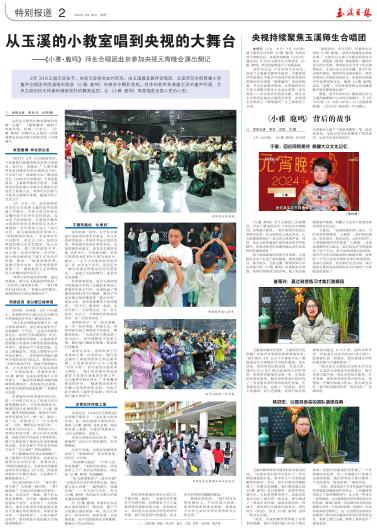 玉溪聂耳教师合唱团、玉溪师范学院附属小学童声合唱团的指挥普海玲说:“我们是在2月16日下午接到中央广播电视总台元宵晚会节目组的邀请,说实话这一次的时间比较仓促。在来之前,我们以为上这个舞台就是把之前所唱的、所排的完整地再呈现一次。可是来到这里后发现,编导老师给我们临时找了一支民族乐团的老师给我们伴奏。在表演形式方面,也做了一些改变,我们不仅要唱,而且还要跳。老师们每天的排练时间超过16个小时,真的非常辛苦,但是通过此次活动也让我们明白,如果要打造一首精品,真的要通过不断的刻苦练习才能够做到。” “我们会以大家的关注和认可为动力,以此次元宵晚会为新的起点。我们会努力提升每一名队员的综合素养,打牢基础,排练更多的优秀合唱作品,珍惜每一个舞台和展示机会,努力成为讲好‘聂耳和国歌的故事’的宣传队。”普海玲说。 |