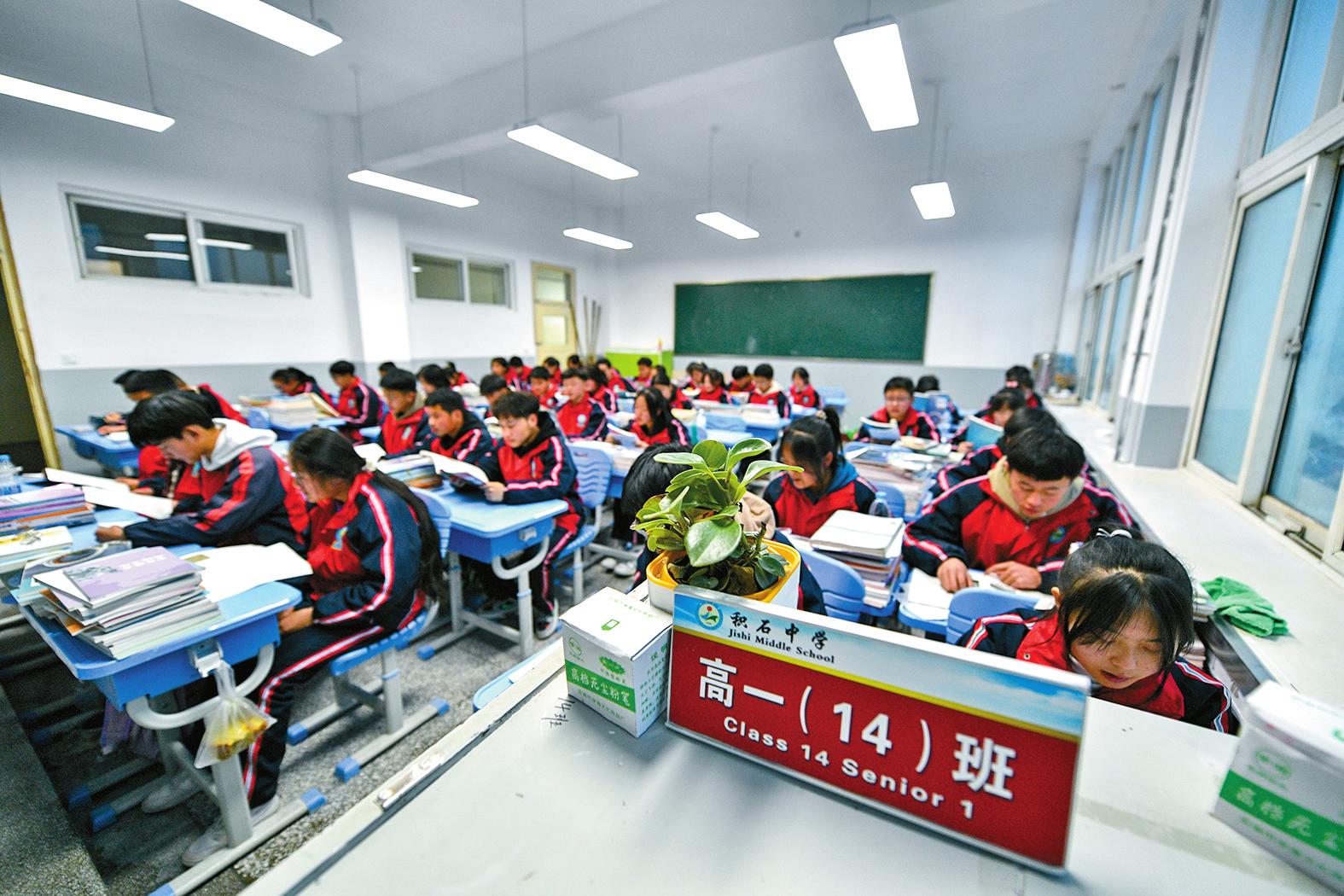 2月26日,积石山县积石中学的高中生在修缮一新的教室里上自习。当天,甘肃积石山地震灾区中小学校全部如期开学,教室里再次响起朗朗读书声。2023年12月18日,积石山县发生6.2级地震,造成全县学校不同程度受损,经过两个多月不懈努力,185所维修加固学校室内工程目前已全部完工并投入使用。