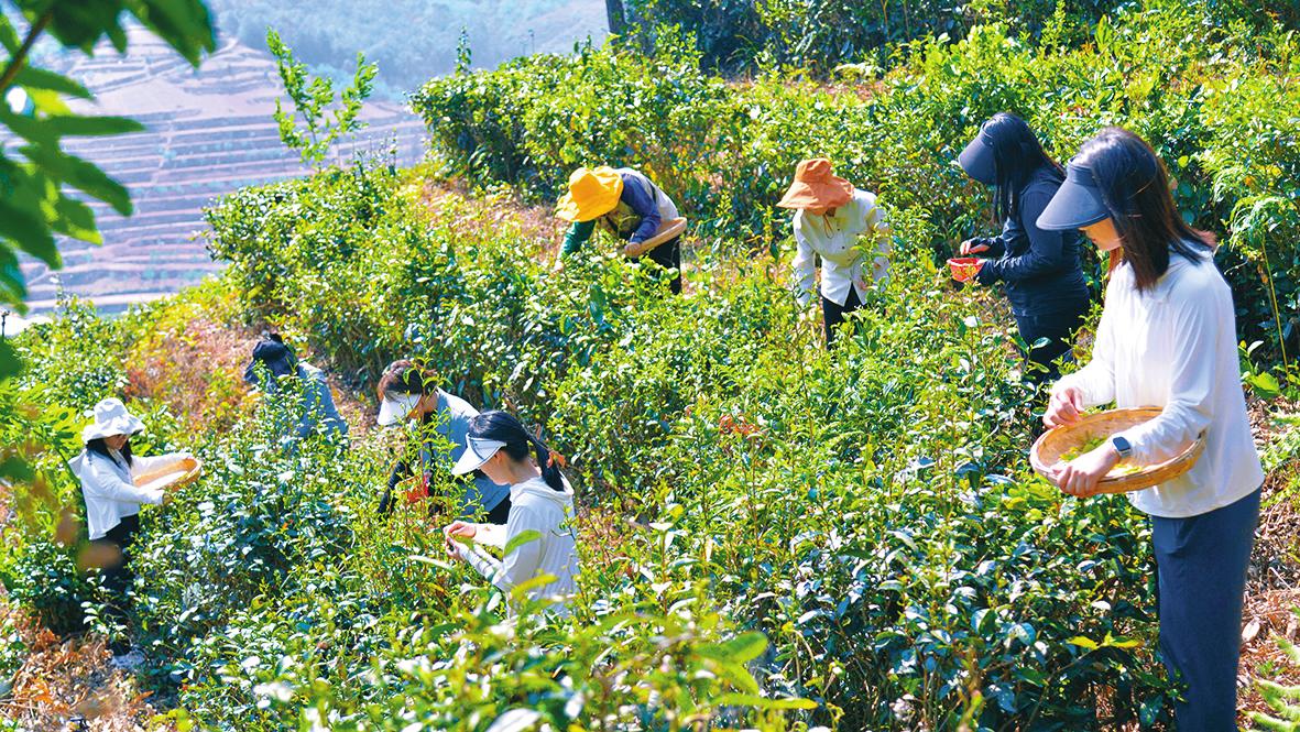 本报讯(通讯员 杨婉翊 张良 文/图)又到一年春茶开采季。近日,“毓秀六街·醉美茶韵”六街街道第三届茶文化节如约而至,八方游客欢聚一堂,近距离感受茶园风光,体验茶文化特色民俗活动。 走进六街街道迤栖冲村的茶山,满目春意,微风吹过,茶香四溢。一排排整齐的茶树从山脚盘旋而上,绿色的春茶铺满青山,一叶叶芽尖翠绿清亮。小朋友们变身小茶农,大人们拿上小竹篮,行走在郁郁葱葱的茶山间,在工作人员的讲解下采摘春尖,体验采茶乐趣。大家穿梭在茶园中,双手上下翻飞,清香鲜嫩的芽尖便轻轻落入篮中。 一曲花灯,一盏茶时。开幕式上,游客们齐聚迤栖冲村民俗文化广场,欣赏以茶文化为主题的文艺演出。舞蹈《客来哒泡香茶》《我在花村等你来》以及花灯歌舞《颂歌献给二十大》等文艺节目将茶元素与当地民俗巧妙融合,表演形式多样、精彩纷呈,赢得现场观众阵阵掌声。 “茶文化节活动非常丰富,抓鸭子比赛、抓鱼比赛我都参加了,非常有趣。”村民曾泽林高兴地说。 活动当天,游客络绎不绝,美食展、茶文化节综合性展销、农特产品展销、榆黄菇采摘、摸鱼比赛、渔乐垂钓、抓鸭子比赛等活动同步进行,吸引了众多游客参与。 六街街道共有2000余亩大叶种茶园,种茶、制茶历史悠久。近年来,街道充分挖掘迤栖冲村优势资源,打造了以“茶、菌、渔、果”融合为特色,集农业观光、特色产业、乡村旅游为一体的田园综合体,以茶文化节为契机,持续推动农文旅融合发展,助推乡村振兴。 |