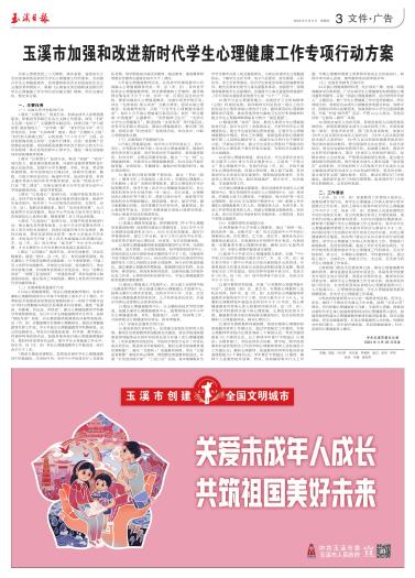 玉溪市加强和改进新时代学生心理健康工作专项行动方案