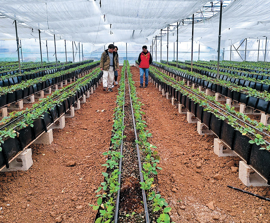 为全面加快玉溪现代农业产业基地建设,提升产业规模化、组织化、设施化、品牌化水平,推动传统农业向现代农业突破发展,促进农业高质量绿色发展和农民持续增收,2023年9月3日,玉溪市出台了《玉溪市加快现代农业产业基地建设的实施方案》,从工作目标、认定标准、认定程序、政策支持、工作要求等方面,对我市现代农业产业基地建设指明方向和进行了安排部署。 去年,我市各级政府和相关部门围绕现代农业产业基地建设目标,按照“一年有起色、两年见成效、三年成体系”的总体安排,积极探索、大胆实践、努力破题,打造了一批可复制、可推广的示范亮点,初步探索出盘活低效园地和改造老旧基地、国资企业领办建设基地、壮大集体经济建设基地三大模式,推动全市现代农业产业基地建设取得阶段性成果。截至2023年底,全市累计建成绿色食品牌省级产业基地11个、市级现代农业基地278个、县级现代农业基地1398个。2024年一季度,全市新建大棚面积1万亩,新增种植基地面积9.66万亩。力争到2025年,全市建成5000个覆盖不同产业类型、不同地域特色、不同发展层次的现代农业产业基地。 盘活低效园地和改造老旧基地模式 玉溪市农业农村局副局长郭春平告诉记者:“用工业化理念谋划农业,推动我市农业高质量绿色发展,关键要找准发力点,抓实现代农业产业基地建设是推动传统农业向现代农业突破发展的核心,但用地难、设施农业用地指标少成了难点和痛点。因此,我们把着力点放在了盘活低效园地和改造老旧基地方面,去年以来,全市现代农业产业基地建设取得的主要成果集中在盘活低效园地和改造老旧基地方面。” 为抓实现代农业产业基地建设,2023年初我市通过摸清底数,盘清了全市可用于发展现代设施农业的一般耕地和低效园地1574块19.82万亩。怎样利用好这部分一般耕地和低效园地搞好现代农业产业基地建设,我市各县(市、区)加大宣传和引导力度,通过招商引资或引导基地主体改扩建方式,从农业基础设施和设备更新、种植方法、管理方式等方面入手,对低效园地和老旧基地进行提质改造升级,通过水肥一体化、数字化升级改造及无土栽培和智能化管理,打造了一批高标准、高质量、高水平的现代农业产业基地,让一批低效园地、老旧基地“活”了起来,为破解用地难、设施农业用地指标少的困局,找到了一条突破之路。 去年以来,我市利用低效园地建设现代农业产业基地的典型案例,首推澄江市龙街街道龙街社区撒马都片区在建的675亩5.0升级版蓝莓种植基地和新平县数字蓝莓现代农业产业园。 为推动蓝莓产业高质量绿色发展,去年以来,澄江市聚力现代农业产业基地建设,由澄江市产业投资开发有限责任公司投资1.6亿元,于2023年12月在澄江市龙街街道龙街社区撒马都片区开工建设5.0升级版蓝莓种植基地,基地将于今年5月下旬完工。 “该项目是去年以来,澄江市贯彻落实玉溪市委以工业化理念谋划农业、大抓现代农业产业基地建设决策部署,收回低效园地,打造尾水、尾液全部收集处理循环利用和进行数字化种植、智能化管理的5.0升级版蓝莓种植基地。”澄江市产业投资开发有限责任公司副总经理李靖说,项目建成后,将通过育苗选种、定制配方基质、增加种植密度,实现集约化种植,提高蓝莓亩均产值。与传统露地栽培模式相比,蓝莓亩均产值将增加80%,每亩可减施氮肥86%、磷肥68%和少用农药91%,实现种植蓝莓农资成本大幅降低。 而新平县数字蓝莓现代农业产业园则是利用低效园地进行提质改造升级,打造一个代表新平现代农业产业基地建设水平的标杆项目。 2023年新平县扬武镇结合气候和区位优势,通过招商引资引进光筑农业集团有限公司,注册成立玉溪蓝百旺农业有限公司,流转赵米克村800余亩低产、低效园地,计划投资9600万元建设数字蓝莓现代农业产业园,主要从事高品质鲜食蓝莓的种植、生产、分拣加工和销售,后期逐步拓展休闲采摘和观光旅游项目。该项目引进数字化、智能化、无土栽培等先进技术打造新平高端现代农业产业基地,项目全面投产后,种植蓝莓的平均亩产值是原种植杨梅平均亩产值的5倍以上,亩均收入达15万元以上。当地群众每年增加土地流转收入60余万元,每年带动周边群众1万余人次进行季节性务工,务工收入达300余万元。 而利用老旧基地进行改造升级,打造现代农业产业基地的典型案例,则以通海锦海农业科技发展有限公司(以下简称“锦海花卉”)通海基地和云南云秀花卉有限公司(以下简称“云秀花卉”)通海基地做得最好。 锦海花卉是一家专业从事切花月季和盆栽绣球花新品种引进、种苗繁育、示范种植及销售的国家高新技术企业和省级农业重点龙头企业。去年,在通海县委、县政府积极引导下,锦海花卉围绕花卉产业高质量绿色发展,投资1000余万元,从提升大棚设施设备入手,通过科技赋能,强势打造数字农业示范基地,对通海基地650亩大棚内的设施设备进行全面数字化、智能化提档升级改造。“绿色、高效、智能、精准是我们打造现代农业产业基地努力的方向。”锦海花卉总经理董春富说,传统农业大水大肥的生产方式与杞麓湖保护冲突越来越大,花卉产业要持续健康发展,必须走环境友好型路子。 锦海花卉通海基地改造完后,实现了尾水、尾液100%的收集循环利用,达到零排放和无污染,同时节约肥料30%