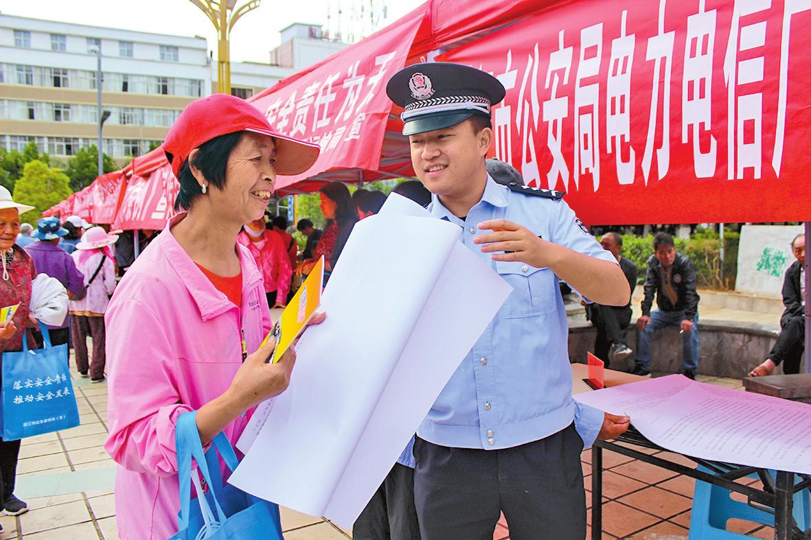 本报讯(通讯员 王立 文/图)为进一步增强人民群众对电力、电信、广播电视“三电”设施保护意识,营造全民参与、共同防范的浓厚氛围,5月11日 ,澄江市公安局民警抓住全国防灾减灾日集中宣传有利契机,积极开展“三电”设施安全保护普法宣传活动。 “三电”设施是指电力、电信和广播电视设施。包括电力部门的变压器、输电线路和用于支撑输电线路的铁塔、电杆,通信部门的光缆线、电缆线和用于发射信号的基站、储电池等内部设施,广播电视部门的电缆线、闭路线、基站、供电器等设施。“三电”设施的正常运行不仅关系到社会稳定、国计民生,更关系到群众的切身利益。 活动现场,民警向群众讲解了“三电”设施是什么、维护设施的重要性以及相关法律法规,结合典型案例,广泛宣传“三电”设施安全防范措施,使广大群众了解相关知识,进一步扩大宣传教育的深度和广度。 活动中共发放宣传资料1000余份,现场解答群众疑问130余人次,宣传活动成效明显。 |