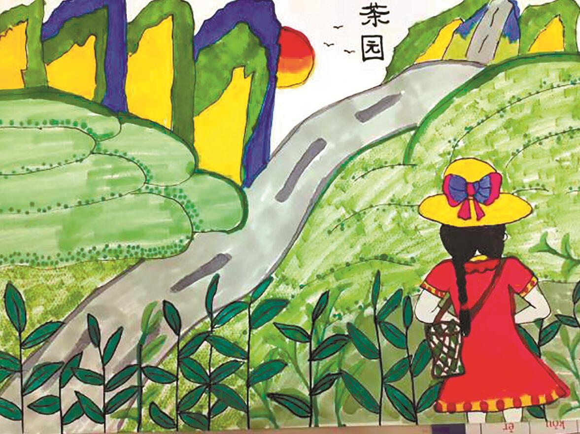 点评:小作者认真选景,细腻下笔,充分展现出茶园生机盎然、清爽美丽的模样。作品色彩搭配浓淡相宜,画面清新自然。
