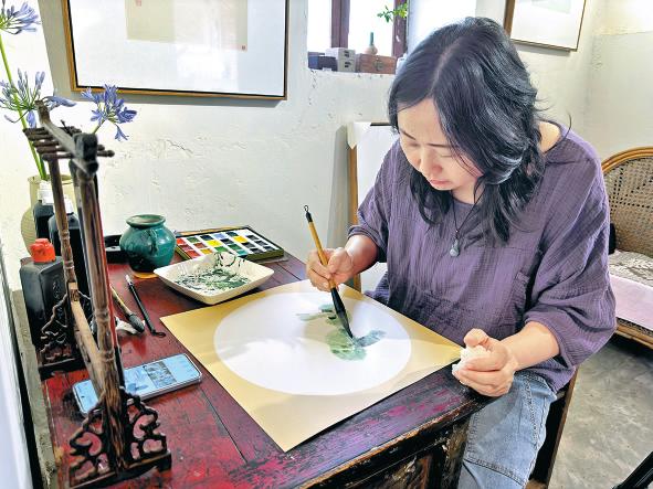 做自己爱做的事 王晓梅从七八年前开始学习水墨画,主攻花鸟与人物。她所画的花大多是朋友到山里采回来的土人参花、羊耳朵花、千里光、山茶花、老白花等,还有一些是蔬菜类的花朵,如苤蓝花、茴香花。她所画的人物大多是身边的朋友及广场、菜市场常见的老人。 为了画好水墨画,她苦练与水墨画相关的书法。水墨画虽然技法简单,但功夫在画外,更多的不是技法的表达,而是境界的呈现,技法仅是工具而已。而书法是水墨画的灵魂,其笔力、线条、气韵、收放、开合都要有深厚的功底。在这方面,她受到玉溪知名画家王从亮的影响。 王晓梅本是油画专业的,自她2011年辞职以来,没有太多的时间去画油画。因为画一幅油画至少要一个星期的时间,有的甚至需要几年。自己的时间太零碎,所以选择提笔即来的水墨画,空闲的时间就用来写写字,感受笔墨在宣纸上划过时气韵生动的痕迹。她说:“人要有自己的爱好,那就是生命里必须要做的事。每当看到好看的花草人物,我都想画下来。在自己得到充实的同时,还可以不断去反思,让自己跳出世俗之外,去看生命的本质。一个人要学会独处,清清静静地做自己喜欢的事。”