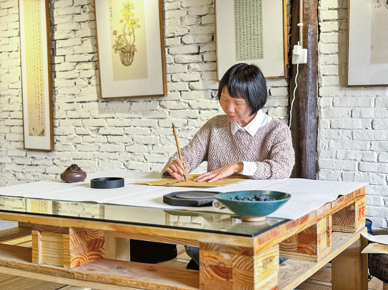 用真情书写玉溪之美 退休后的文虹,拥有更多的时间与空间专注于自己的书法创作。她将自己的笔端浸润到玉溪这座城市的文化脉络中,以文字为骨、以线条为魂,将玉溪之美、“玉溪之变”融入她的书法作品中,并围绕其身边的人、事、物,创作了《玉溪赋》《孔祥庚词咏玉溪录抄》《艾慕诗抄》等多件彰显玉溪本地风土人情的书法作品,更将《义勇军进行曲》以书法的形式呈现出来,让更多人了解“聂耳和国歌的故事”,使人们在品读其书法作品时,置身于玉溪的山水之间,感受这座城市的韵味与风情。 文虹时常关注玉溪的变迁和发展,她的作品既有对玉溪历史文化的传承与弘扬,也有对玉溪未来发展的憧憬与期待。文虹说:“我在玉溪的这20多年里,目睹了玉溪的变化与发展,我深深感受到了这座城市的魅力和活力。从古老的街巷到现代的建筑,从传统的文化到新兴的产业,玉溪一直在不断地向前迈进,不断地焕发出新的生机和活力,这是一个适合工作和生活的地方。我有责任将玉溪的文化底蕴和变化以书法的形式表现出来,让更多人了解玉溪、热爱玉溪。” 今年5月,文虹在挚友王晓梅的邀约下,在白腊屯燕来轩举办了“文虹、王晓梅书画展”,展出多件书法和绘画作品。当人们踏进由老宅改造而来的燕来轩时,一股浓厚的艺术气息扑面而来。墙壁上,挂满了文虹和王晓梅的书法、绘画作品,每一幅都凝聚了她们的心血和对玉溪的热爱。文虹说:“未来将会经常到燕来轩,在远离城市喧嚣的环境中寻找创作的灵感,创作出更多有关玉溪山水人文的作品,表达我对玉溪的热爱。” 玉溪师院知名画家郭巍看了她们的展览后深有感触地说:“在地处清静的乡村办展览,为文艺界提供了一种新的思路和方法,显得更加纯粹。” |