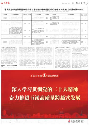中央生态环境保护督察群众信访举报转办和边督边改公开情况一览表(玉溪市第十四批)
