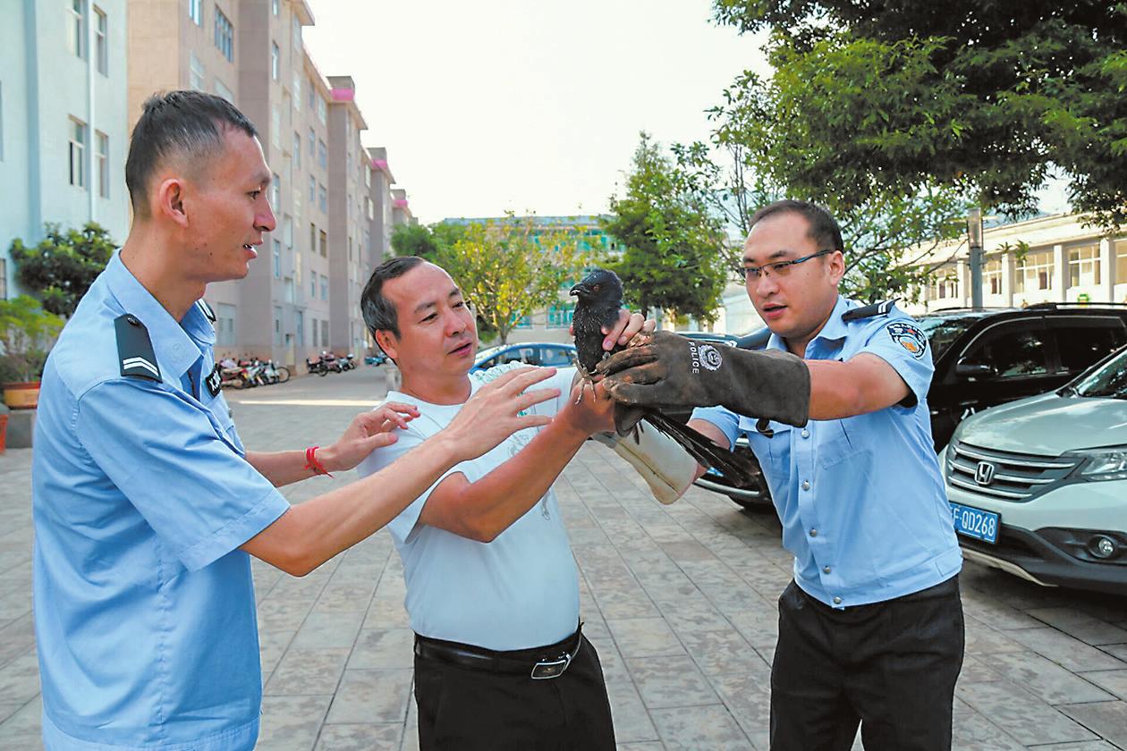 本报讯(通讯员 苏献东 张碧卿 文/图)近日,一对外地夫妇开车回家途中,在路边发现一只鸟,疑似被车撞到受伤。这对热心夫妇猜想其很有可能是国家保护动物,便带上该动物急匆匆到新平城东汽车客运站报警求助。 接报后,新平县公安局环食药侦大队民警迅速出动,赶赴客运站接力救援。通过现场检查,发现该动物翅膀有受伤的痕迹。为了避免其再一次受到伤害,民警将其装入鸟笼后带回大队,并联系县林草局工作人员给予专业救助。 经了解,该动物为褐翅鸦鹃,是鸦鹃科、鸦鹃属中型鸟类,属于国家二级保护动物。目前,该鸟已移交县林草局,待其康复具备野外生存条件后再放归大自然。 |