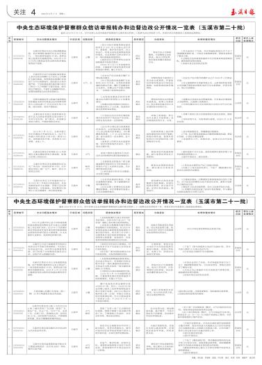 中央生态环境保护督察群众信访举报转办和边督边改公开情况一览表(玉溪市第二十批)