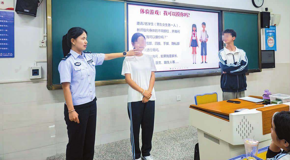 为了增强未成年人的安全防范意识,推进法治校园建设,强化学生对性侵害的认识及自身安全保护意识,提高预防性侵害的自我保护能力,更好地保护未成年人身心健康发展,5月22日晚,玉溪市公安局红塔分局李棋派出所组织民警到云南省玉溪卫生学校开展护蕾行动,让学生了解性侵害,学会保护自己。 通讯员 陈海花 摄