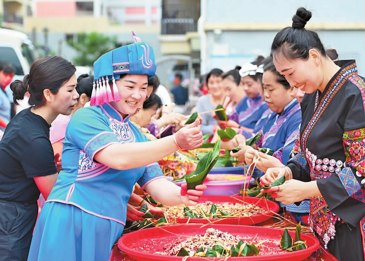 端午佳节,人们包粽子、赛龙舟、束艾草、点雄黄,在多彩民俗活动中欢聚一堂、共度佳节。