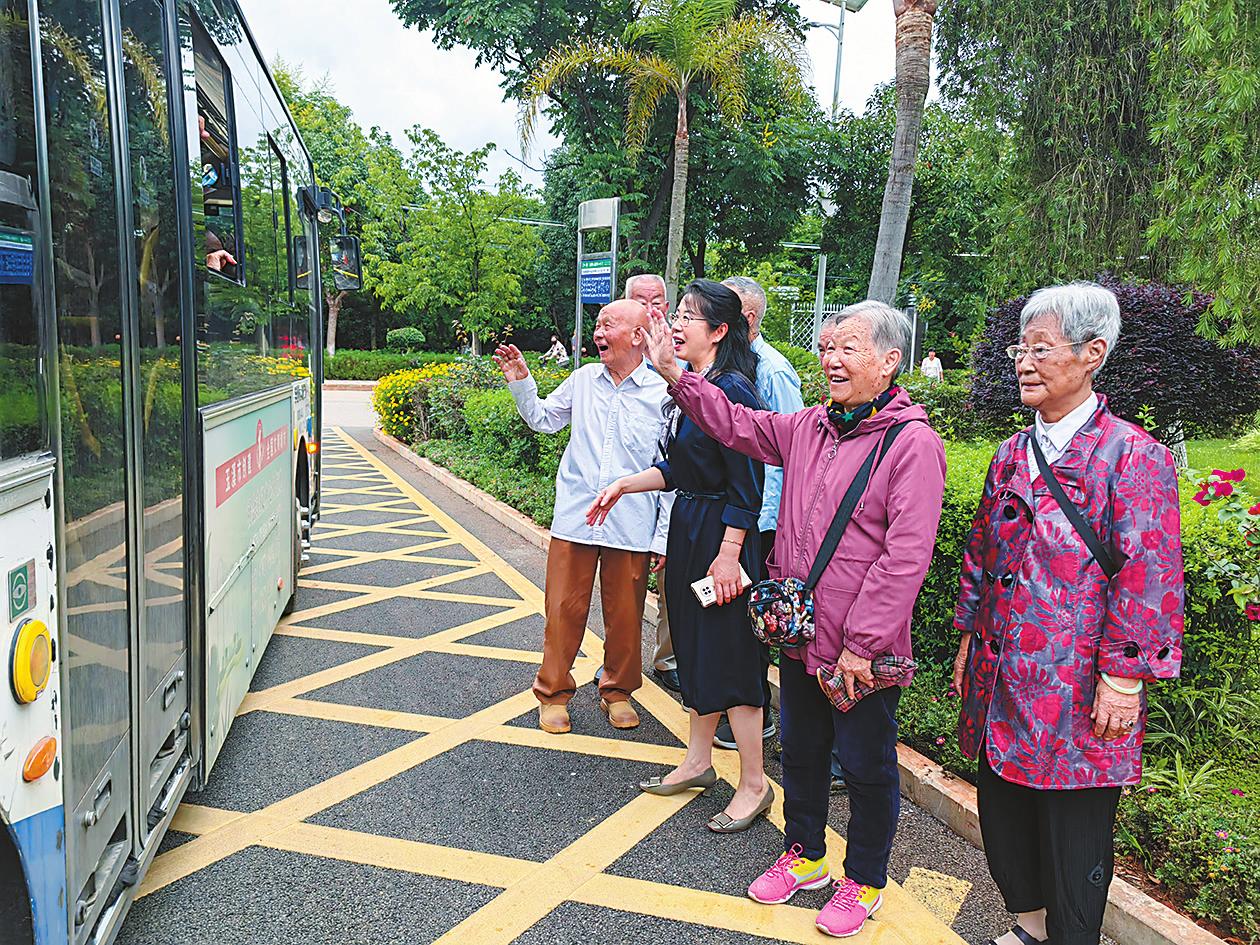 本报讯(记者 白诚颖 文/图)7月5日上午8时许,从起点站常里出发,驶至终点站——红塔区市民中心(临岸三千城)的21路公交车,首次到玉溪市社会福利服务中心站点载客。这意味着从当天起,从玉溪中心城区到市社会福利服务中心可以坐公交车了。 市社会福利服务中心位于红塔区大营街街道赤马社区永和路110号(距赤马大桥约300米),内设老年公寓、老年养护院、城乡福利院、儿童福利院,共有床位768张,是全市最大的综合性公办社会福利服务机构。此前,这里一直没有公交站点,生活、工作在此的400余人和探视家属、爱心团体、志愿者等人员出行不便,大家十分希望开通公交车。 “为回应群众关切,解决社会各界爱心人士及院内‘一老一小’服务对象公共交通出行问题,3个月前,我们中心特向市交通运输局发了函,希望在市社会福利服务中心设置公交站点。”市社会福利服务中心主任杨超向记者介绍。 市公共汽车服务公司接到市交通运输局转来的函后,实地走访调研,但当时赤马大桥未通车,不能立即解决公交车通行问题。“7月3日我们再次实地走访,发现已经具备了开通公交车的条件,双方协商后定于7月5日开通公交车。”市公共汽车服务公司安全运调科科长段绍强介绍。 目前,21路公交车在市社会福利服务中心设置了停靠点,共有8辆公交车为这条线路服务,市民沿线可换乘2路、3路、4路、5路、6路等多条公交线路,每人次票价1元,支持微信、支付宝等方式支付。 据介绍,21路公交线路从常里至区市民中心方向的发车时间为8:00、13:30、18:00,途经站点为常里、蔡官营、溪汇中学、蒿枝坝、师旗、汇龙生态园、幸福小镇、玉泉湖小区2号门、汇溪公园、唐旗营、玉溪市社会福利服务中心、陈家营、桂井、刘总旗路口、市卫生健康委、玉龙花园、玉溪交警直属大队、新兴饭店、红塔公安分局、三角秧田(珊瑚路)、金州社区、聂耳广场、河滨公园、市规划馆(常里至临岸三千城方向)、区市民中心(临岸三千城)。区市民中心至常里发车时间为7:30、11:30、16:30。 当天上午,入住老年公寓的老年人早早在站台等候。85岁老人施立明说,平常自己打出租车去玉溪市人民医院,来回要花40元,现在有公交车,出行方便又实惠,“感谢政府关心我们老年人,感谢公交公司服务我们老年人”。 张碧珍老人已经想好了出行方案,乘坐21路公交车到新兴饭店,然后再转乘4路公交车即能到达儿子家,生活太方便了。入住老年公寓4年的她激动地说:“感谢政府为我们老年人解决出行问题。” |