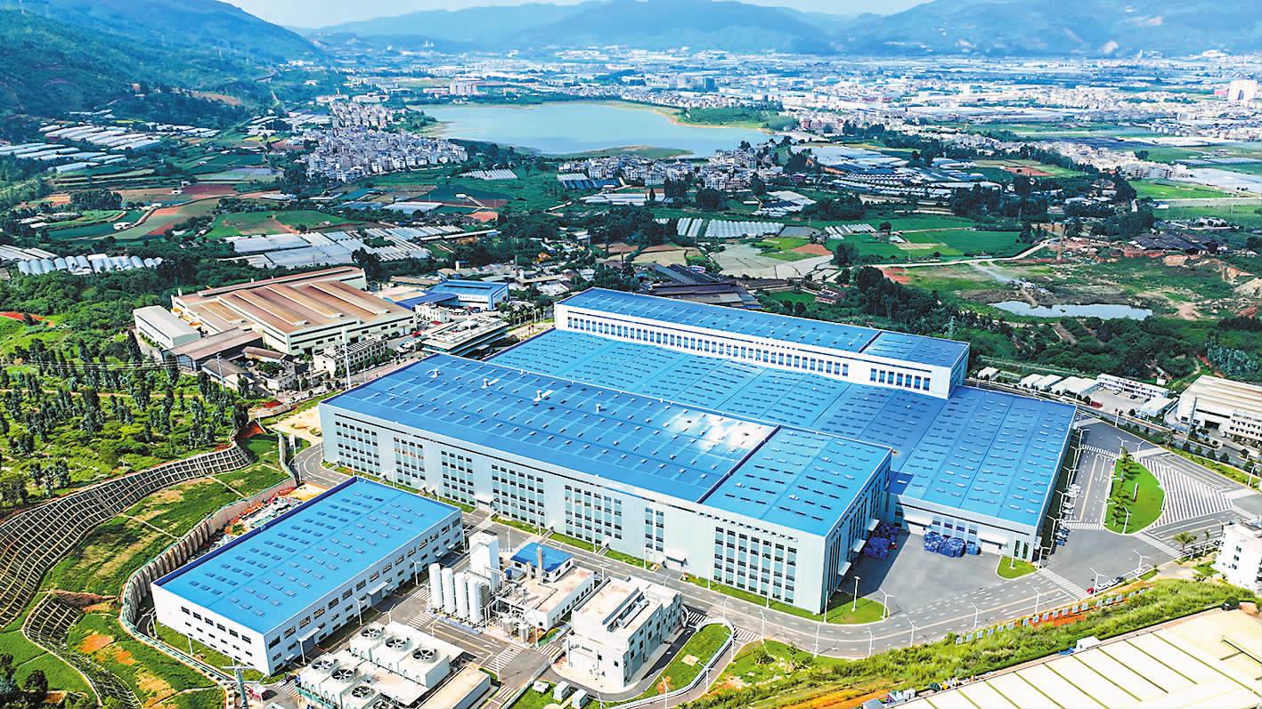 近年来,我市全产业链加快布局新能源电池产业发展,努力打造成为国内一流的新能源电池产业基地,力争实现千亿元产值。图为无人机航拍的丰元 (云南)锂能科技有限公司10万吨正极材料产能一期项目全景。 本报记者 曾永洪 摄