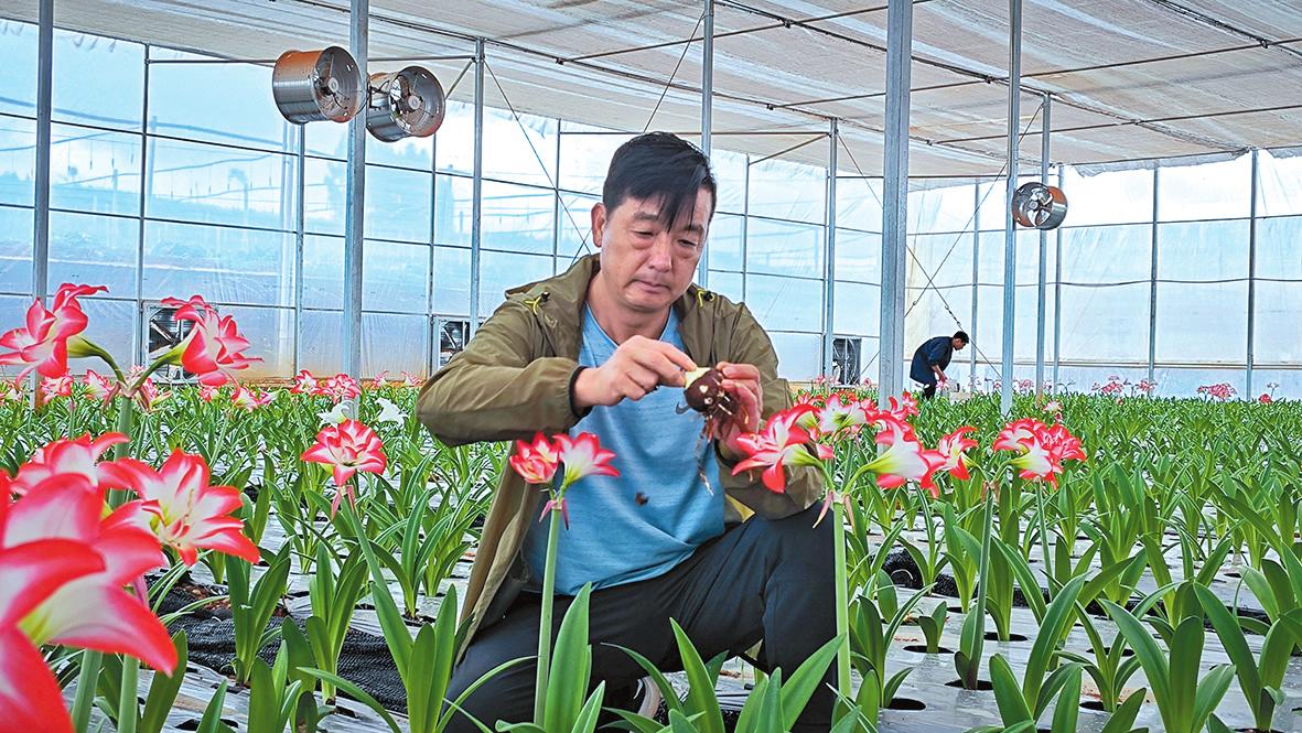 本报讯(通讯员 佟薇 龙传运 文/图)3年前,通海县里山乡五山村经多方考察学习,大胆引进朱顶红,采取“公司+合作社+农户”的方式进行试种,经过精心培育,于近期取得成功,朱顶红成为助力乡村振兴的又一新产业。 日前,走进五山村朱顶红种植基地,1万余株朱顶红郁郁葱葱、生机盎然,鲜艳亮丽、色泽红润的花朵抢先绽放;种植2个多月的8万余株新种苗长势良好。基地内,工人们正忙着除草、管护。 “作为盆景村,近年来,我们的盆景产业发展得很好,但是盆景因为市场价格较高,受众面窄,基于这个原因,我们就想把朱顶红作为盆景的配套产业来发展。”五山村党总支书记、村委会主任胡存轩介绍,“目前我们是批量试种,今年种10多亩,一般一年时间就能见效益了。” 朱顶红品种大多来自荷兰、南非,在引进种植后,五山村在朱顶红栽培技术攻克、种苗繁育等方面进行了长达3年的摸索、实践,选育了适宜五山村气候条件,并深受市场喜爱的“花孔雀”“花边石竹”等品种进行种植。同时,通过技术手段,延长了朱顶红的开花时间和次数,让其经济价值更高,更具市场竞争力。 “现在我们已经基本上掌握了种植、育苗、驯化等核心技术,就拿驯化来说,原本朱顶红一年就开一次花,驯化后,它就可以一年四季开花,且每次花期可达20天左右。”胡存轩说,“我们选育的都是市场前景较好的品种,可以卖花,也可以卖种球,一枝花的价格是10元到15元,种球是按厘米来算,1元钱1厘米,大部分都可以长到8厘米到10厘米,这样算下来,我们除去成本,差不多每亩还有20万元的纯收入。” 据悉,下一步,五山村将充分发挥朱顶红产业带动作用,采取联农带农模式,让更多的村民参与到朱顶红种植中来,通过提供种植技术培训、种苗供应以及销售渠道支持等,让朱顶红在五山村绽放出更多“致富花”。 |