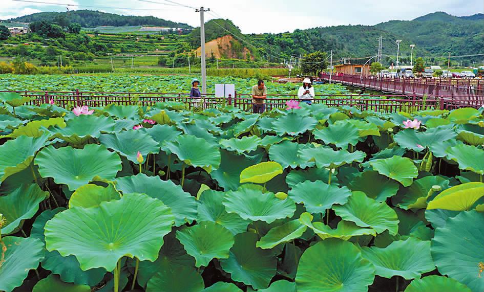 盛夏时节,地处通海县高大乡普丛村的数百亩荷花陆续盛开,吸引游人前来观赏游玩。据悉,普丛村立足本地自然资源,以乡村生态环境为基础,推进特色农业与乡村旅游深度融合,让 “生态颜值”变 “经济产值”,为乡村振兴注入了新活力。 本报记者 曾梦琪 摄