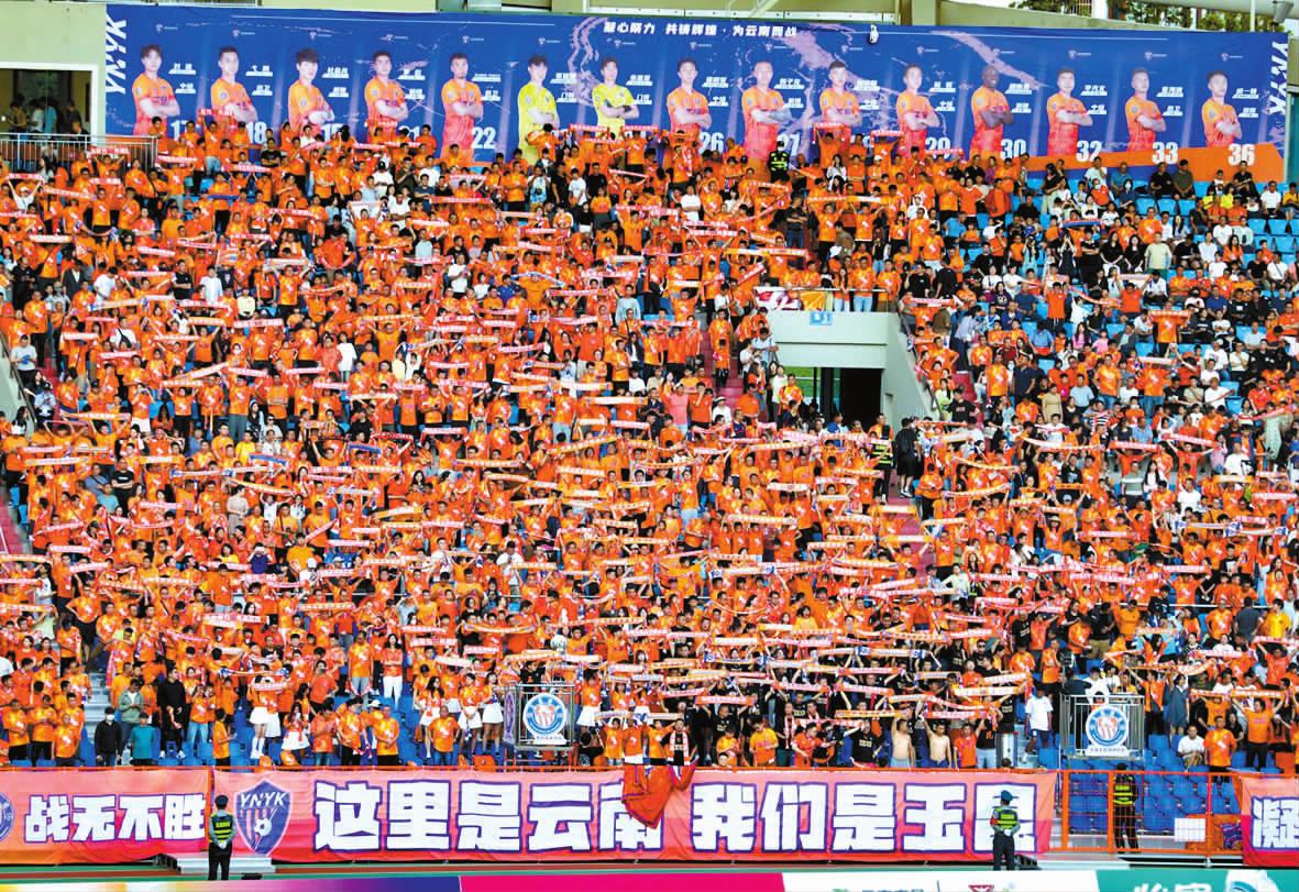 □ 本报记者 沈建龙 7月6日是一个让云南玉昆球迷热血沸腾的日子,中国足球甲级联赛(以下简称“中甲联赛”)第16轮,云南玉昆2比0战胜佛山南狮。来自全省的1.9万多名球迷,再次见证了家乡球队的胜利。赛场上,玉溪球迷纷纷喊出“玉溪很City,欢迎来Happy!”的口号,欢迎更多球迷来玉溪感受球赛的氛围和城市魅力。 今年,随着云南玉昆足球俱乐部升入中甲,云南足球又重回中甲时代。作为目前云南职业足球的顶流,目前云南玉昆以13胜3平1负42分积分排名中甲第一,云南玉昆优秀的战绩吸引了广大球迷关注,“周末到玉溪看球”“到玉溪过‘足’瘾”成为球迷热语,玉溪又增加了一张亮丽的体育名片。 据统计数据显示,2024年,玉溪已成功举办云南玉昆主场赛事9场(含中甲联赛8场、足协杯赛事1场),累计到场观众17.2万余人次,场均观众人数达1.9万人,观众上座率居中甲前列,甚至超过一些中超联赛的观赛人数,庞大的球迷基础和云南玉昆优秀的战绩,迅速让中甲联赛云南赛区——玉溪火爆出圈,成为全国球迷关注的焦点。随着赛事影响力的不断提升,“跟着赛事去旅行,体验有一种叫云南的生活”也成为众多球迷对玉溪这座城市的向往。